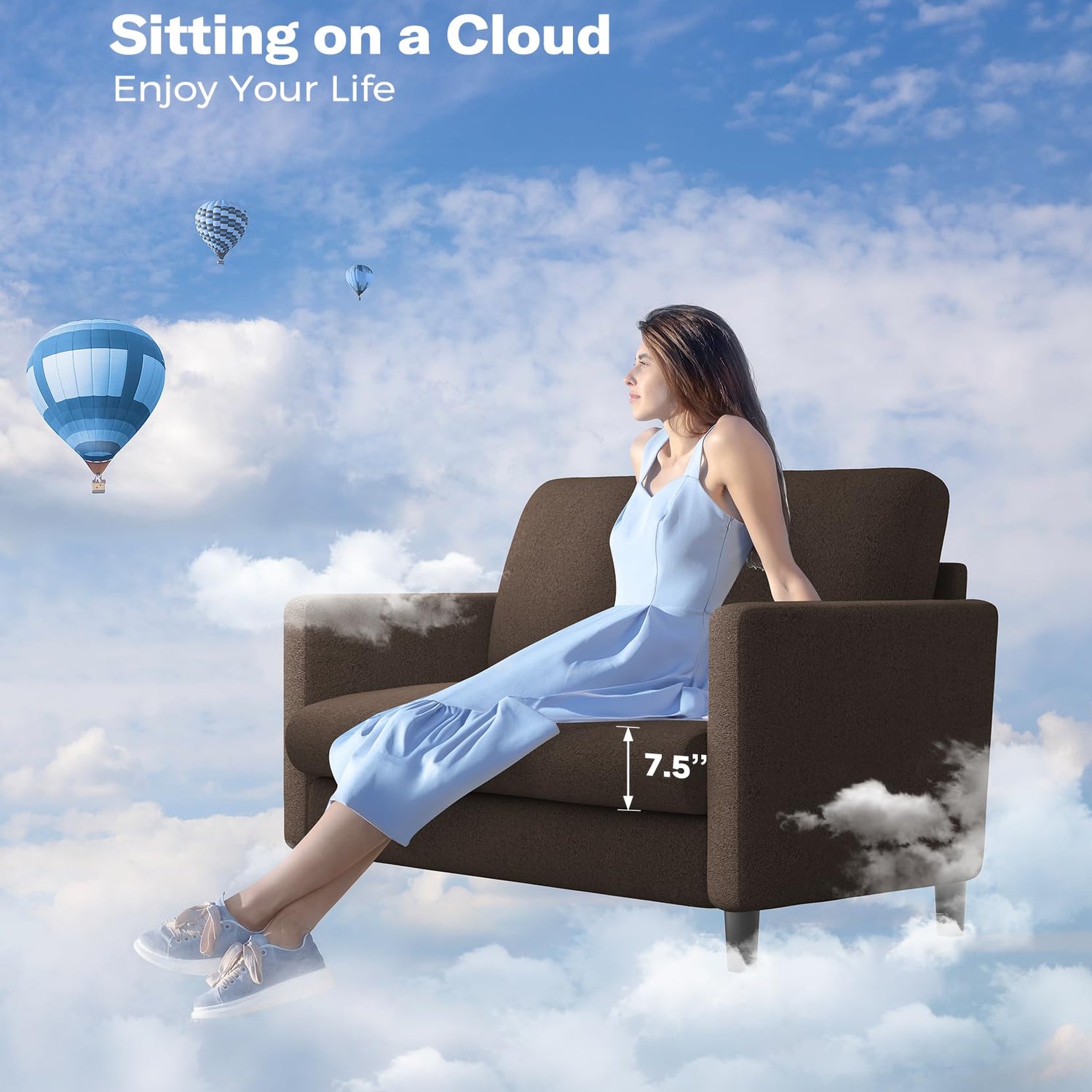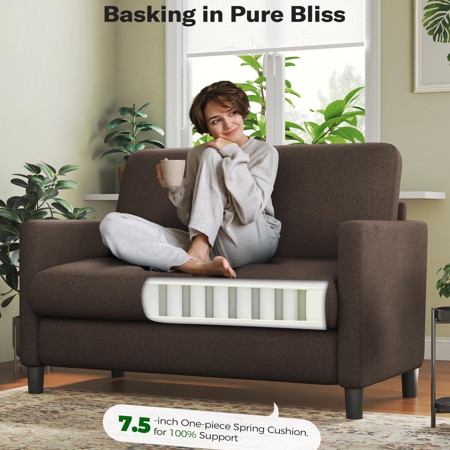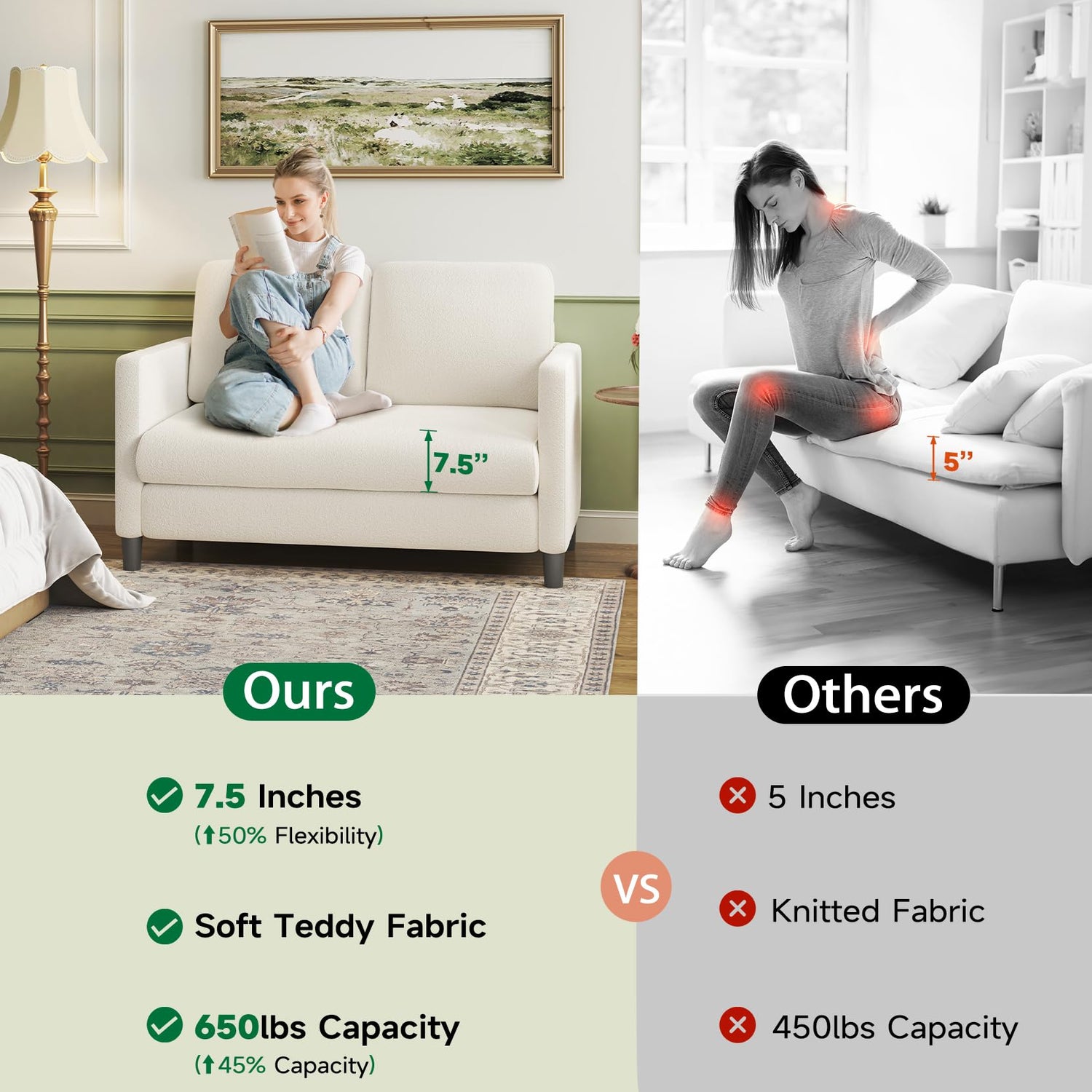 - 【SITTING ON A CLOUD】Welzona small sofa couch features a 7.5" spring seat cushion that provides excellent support and elasticity for your body. The 7.1" backrest and 22" seat depth offer extra support and waist comfort. You can sit down and feel the small couch for bedroom backrest fit and support, enjoying unparalleled comfort. Whether you're watching TV, reading books, or chatting with family, this small loveseat sofa will provide you with the ultimate comfortable experience.