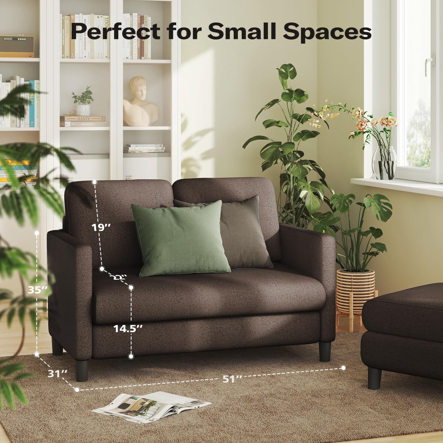 - 【COZY HAVEN FOR COMPACT SPACES】51" long and 35" wide, this small couch love seat is perfect for small spaces. Whether it's a small living room, apartment, balcony, study, or loft. Our small loveseat for small spaces also adapts to any home style, whether modern, simple, or traditional, and creates a warm small space.