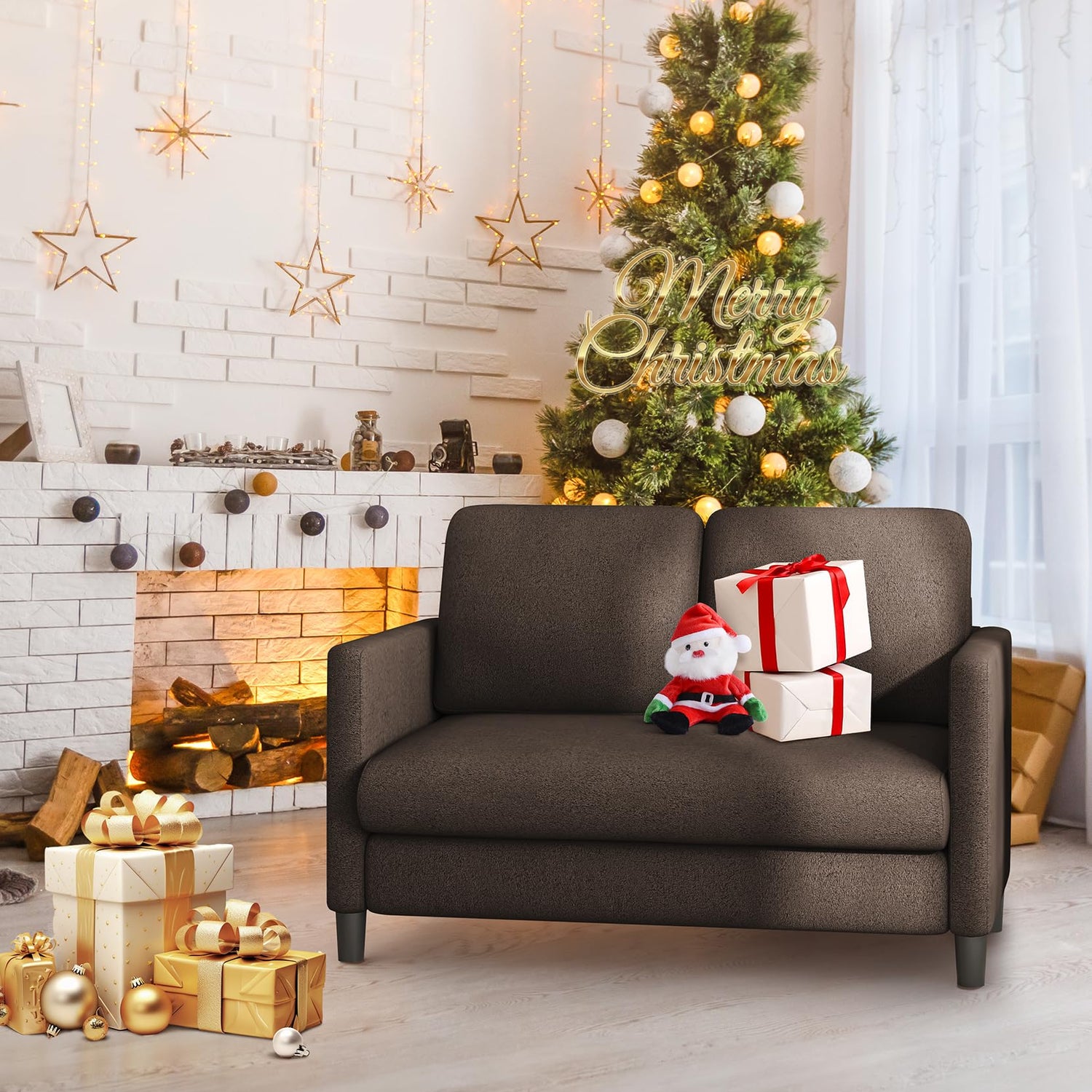 Welzona Loveseat Sofa, 51" Small Sofa Couch for Bedroom, Comfy Teddy Love Seat, Tool-Free Setup Sofas for Living Room, All-Wood Small Couches for Small Spaces, Small Couch No Pillow Include, Brown