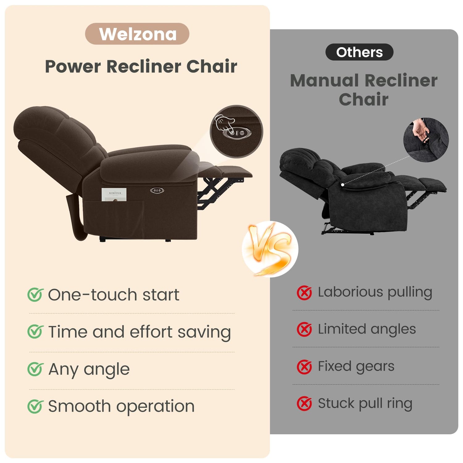 Welzona Updated Power Recliner Chair, Adjustable Electric Recliner Chair for Adults, Ultra-Comfy Teddy Fleece Recliner Chair for Small Space, Tool-Free Assembly, 2 Side Pockets and USB Port, Coffee