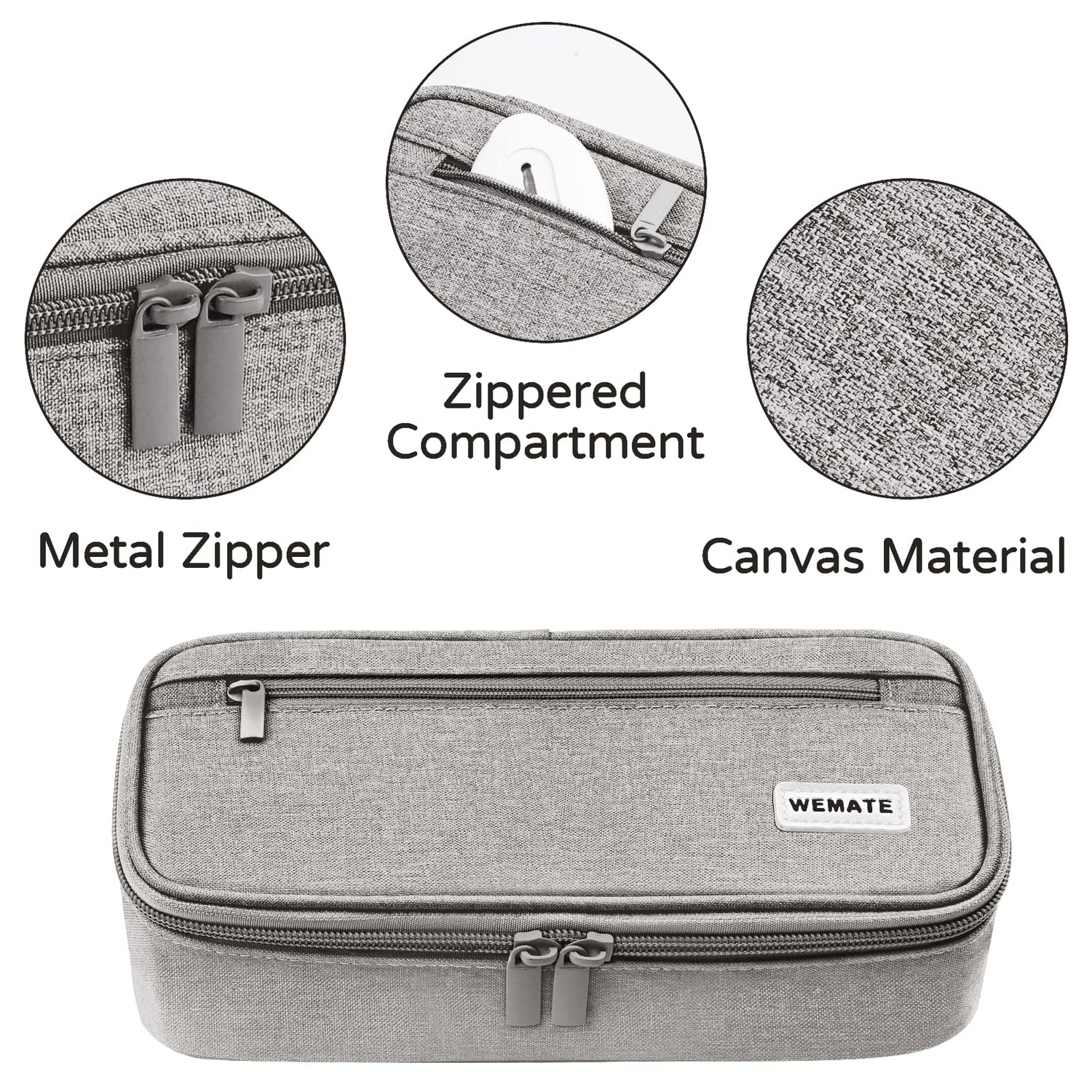 - Premium Canvas: WEMATE large-capacity pencil holder is made of 100% high-quality canvas, is strong and durable. Fine workmanship and provide you with dust-proof, not easy to damage pencil pouch.well-crafted and subjected to strict quality inspection, that not only looks great but will last for years to come