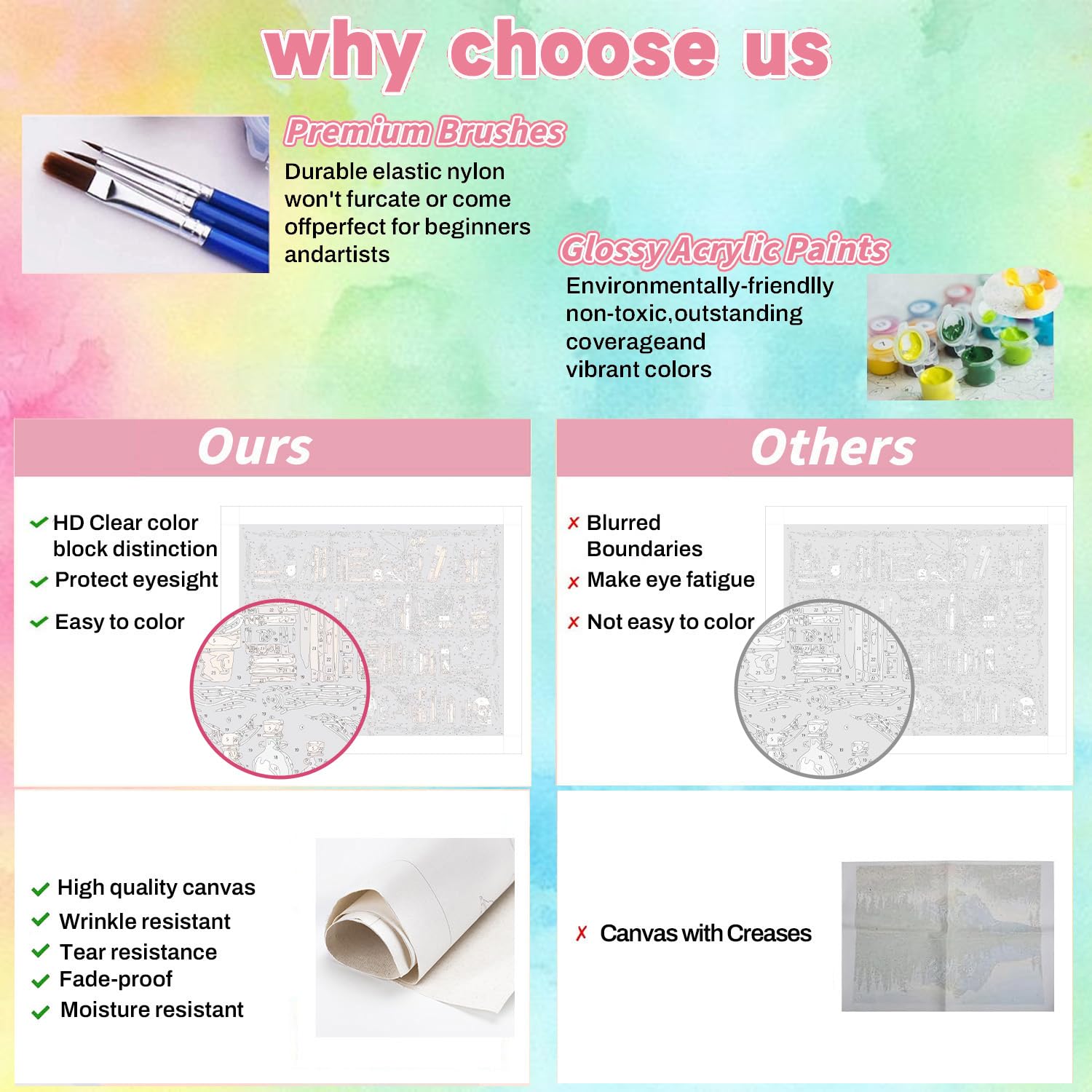 - 【What You Will Get】Paint by numbers kit for adults has a complete tool kit, including 3*nylon acrylic paint brushes, 2*hook nails, 1*matched Acrylic paint and 1* pre-printed textured High-definition color canvas,Open the package and you can start painting immediately.