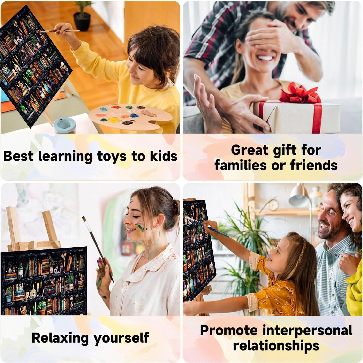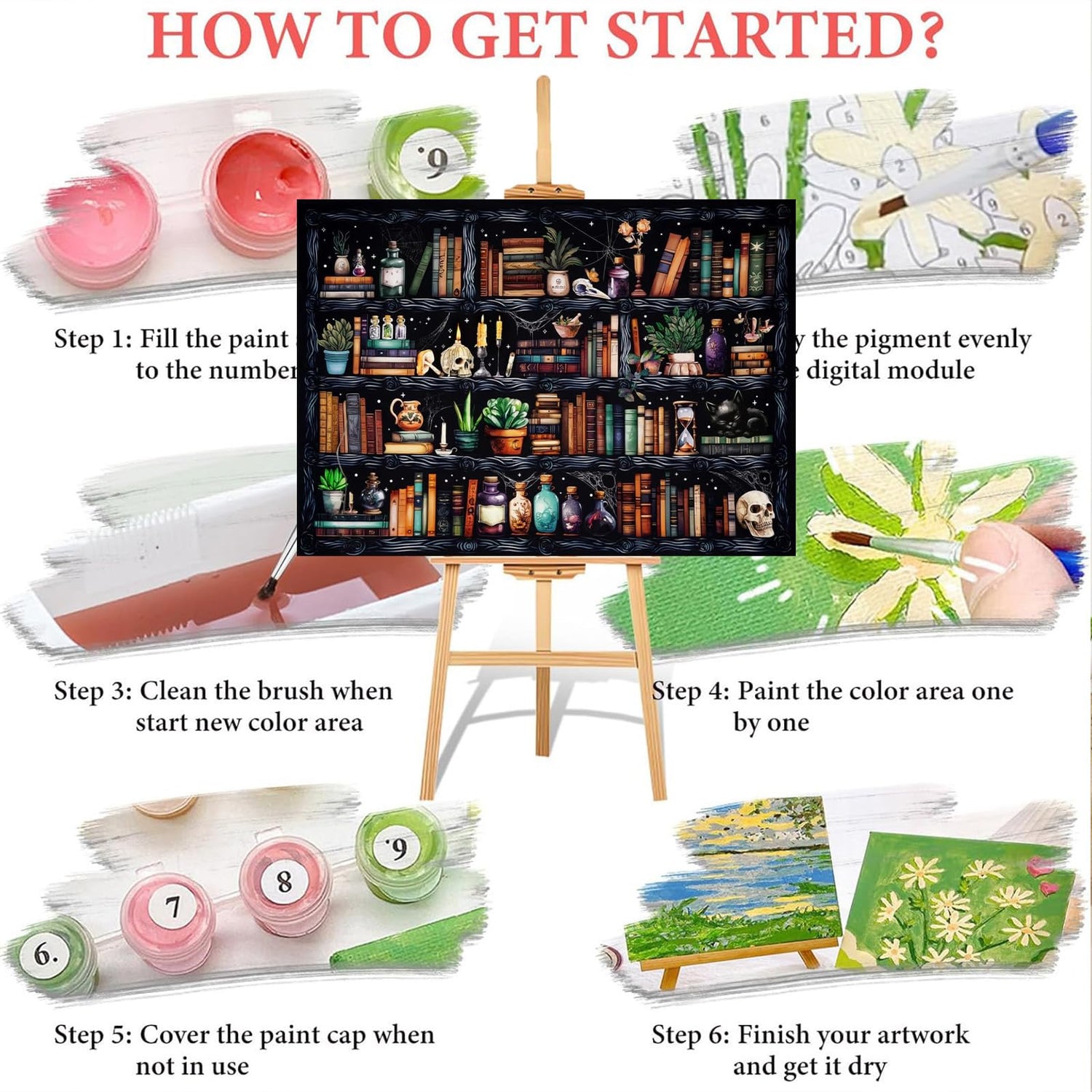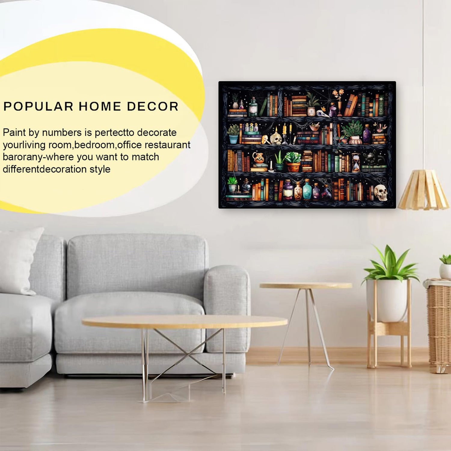 - 【Versatile and Decorative】Gothic bookshelf Paint by number canvas for adults can be used to decorate your home, office, or any other space. The finished artwork adds a touch of elegance and sophistication to any room, making it a great addition to your interior decor. Painting by numbers can also be a thoughtful gift for special occasions such as Christmas, weddings, birthdays, etc. With the paint by numbers kit, you can create personalized and unique decorations.