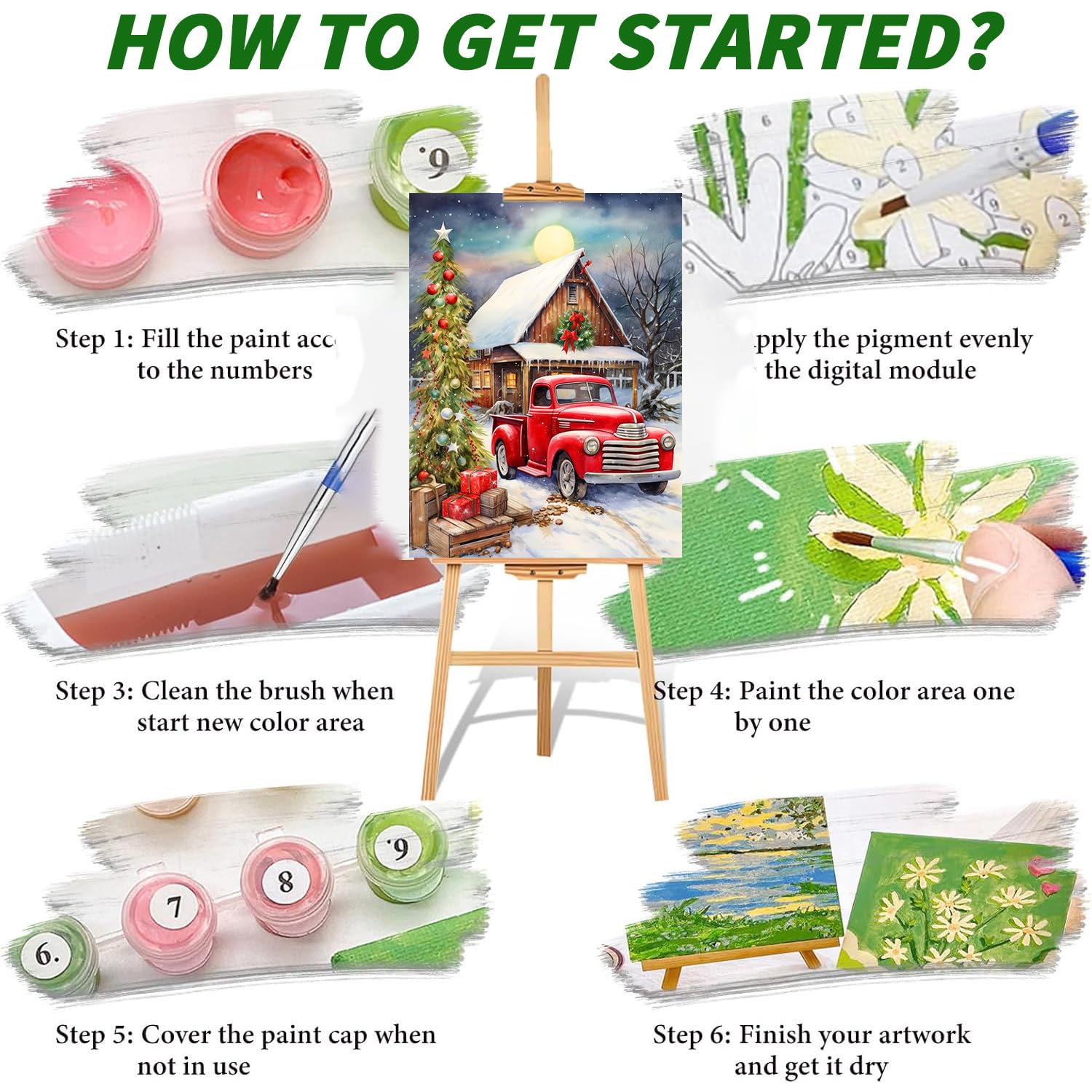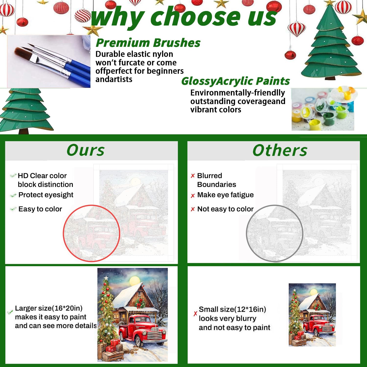 - 【HD Color Canvas 】Different from other paint by number kits,our christmas painting by numbers uses high-definition color canvas.The number area is easier to distinguish,and paint is easier to adhere to it. Colored canvas can prevent eyestrain and make painting easier.