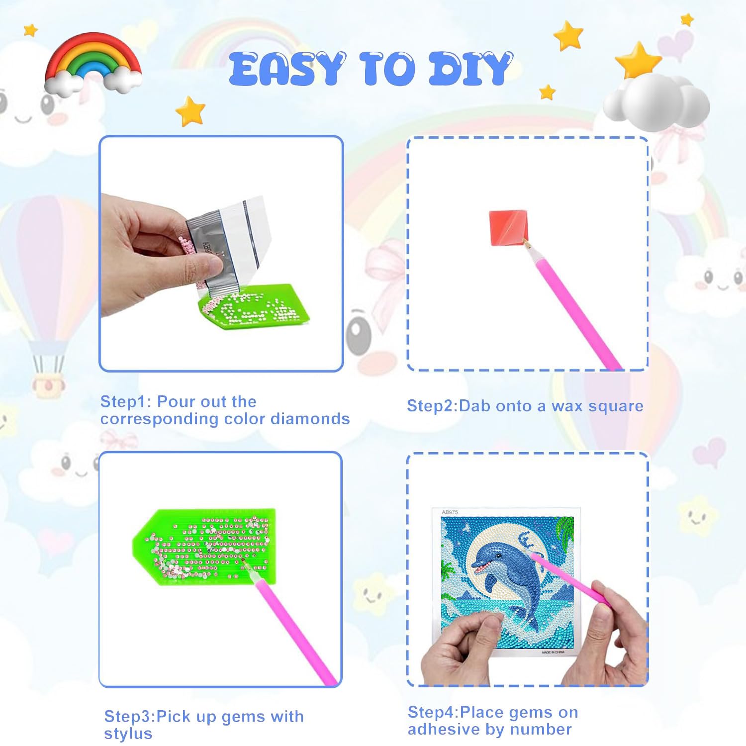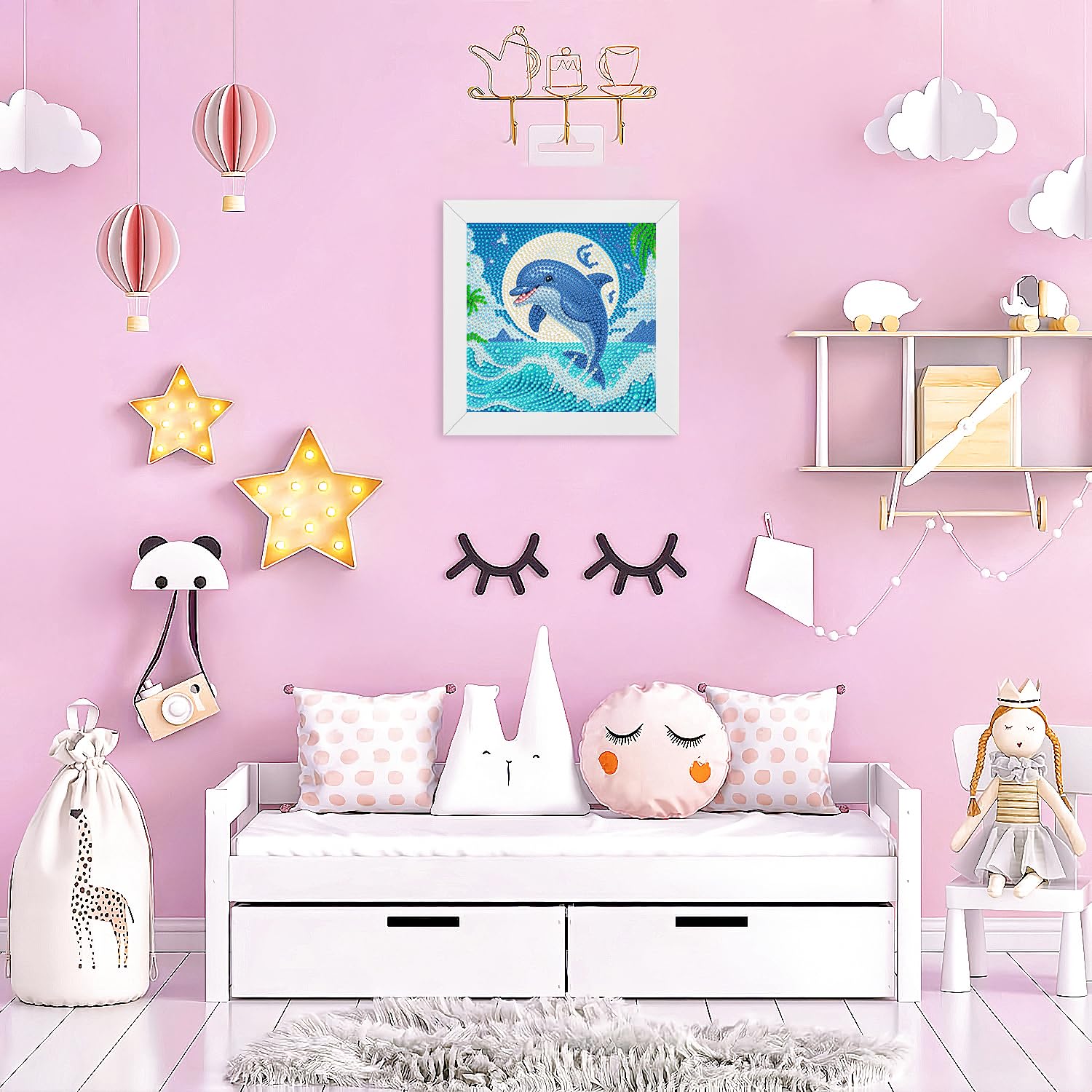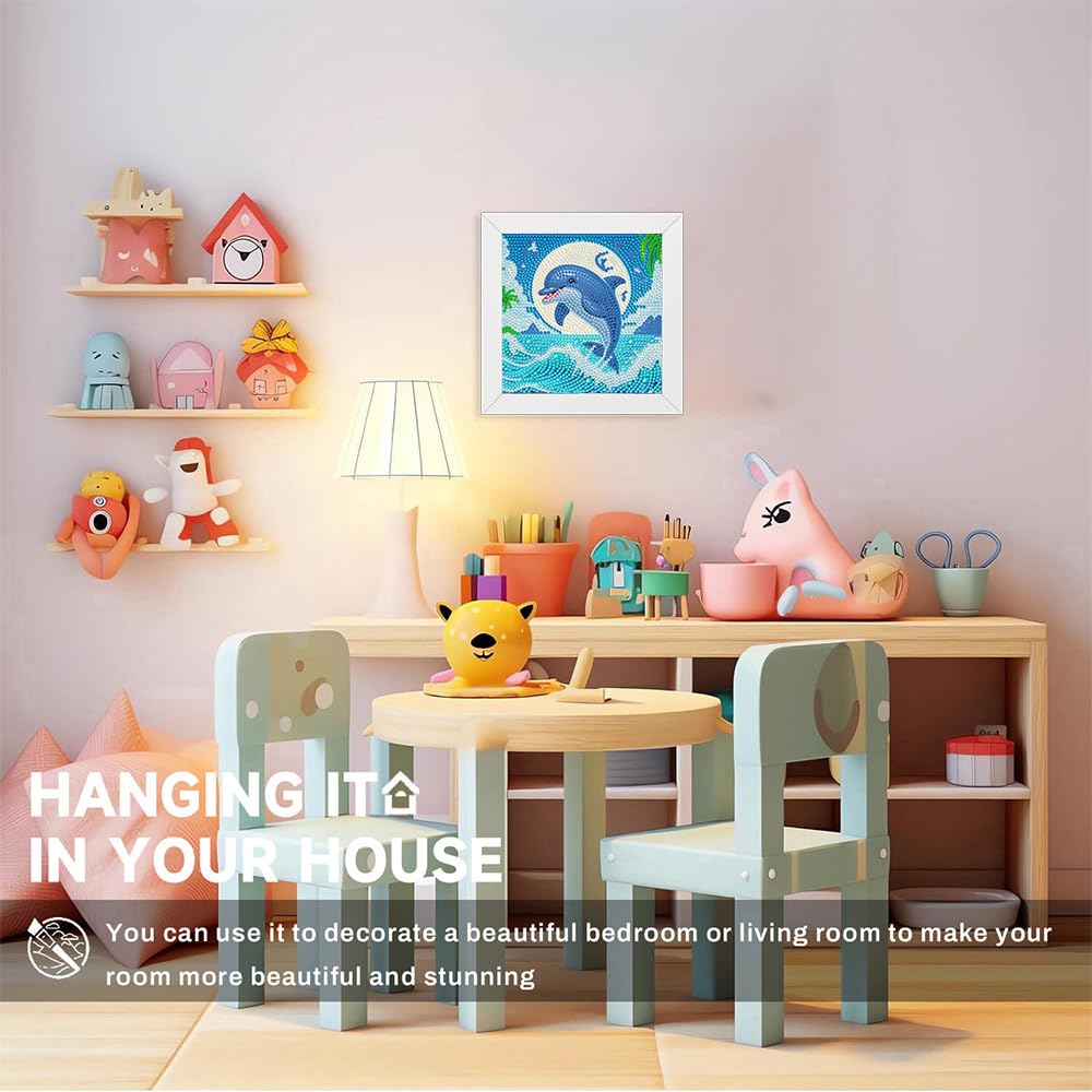 WEMEON Dolphin Diamond Art Painting Kits for Kids with Frame,Animal Diamond Art for Children Ages 4-8-12, with Beautiful Package for Gift Home Wall Decor(7x7inch)