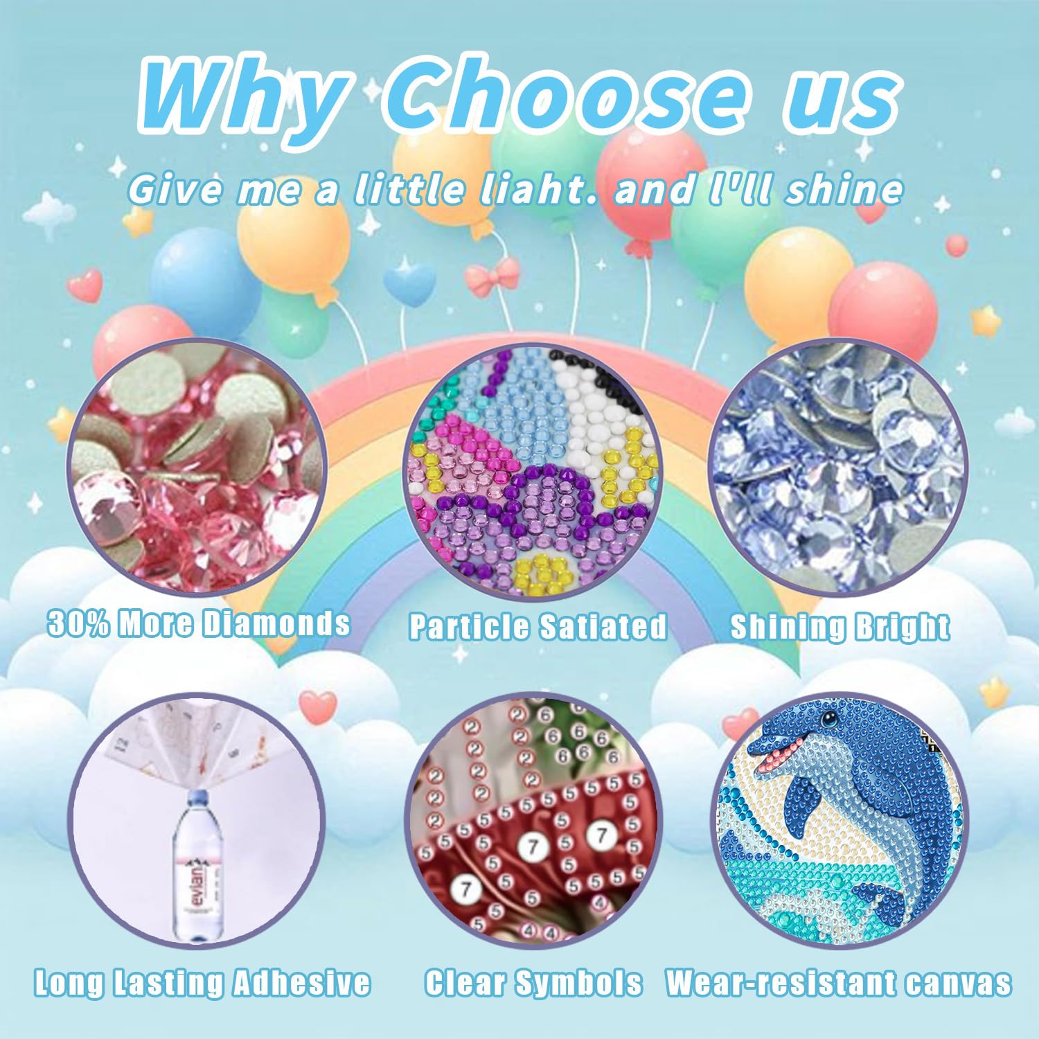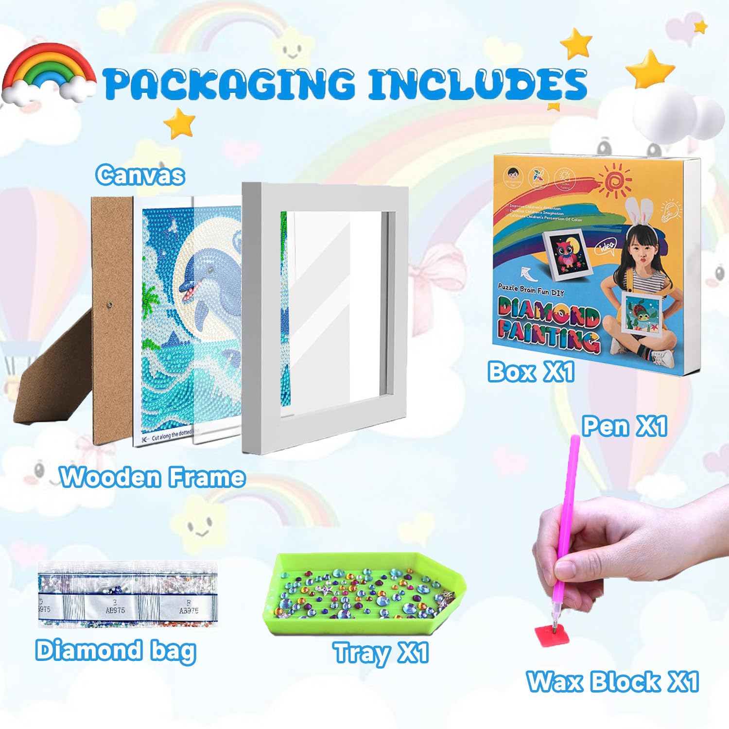 - 【Safe and Durable Material】Our diamodn painting kits for kids made of environment friendly resin material,will never fade and the frame is made of high-quality durable wood.The high-quality twinkling acrylic diamonds have different sizes and different colors,which makes the painting more three-dimensional and looks gorgeous and bright. You will be surprised when finish your art.