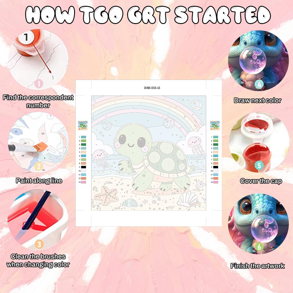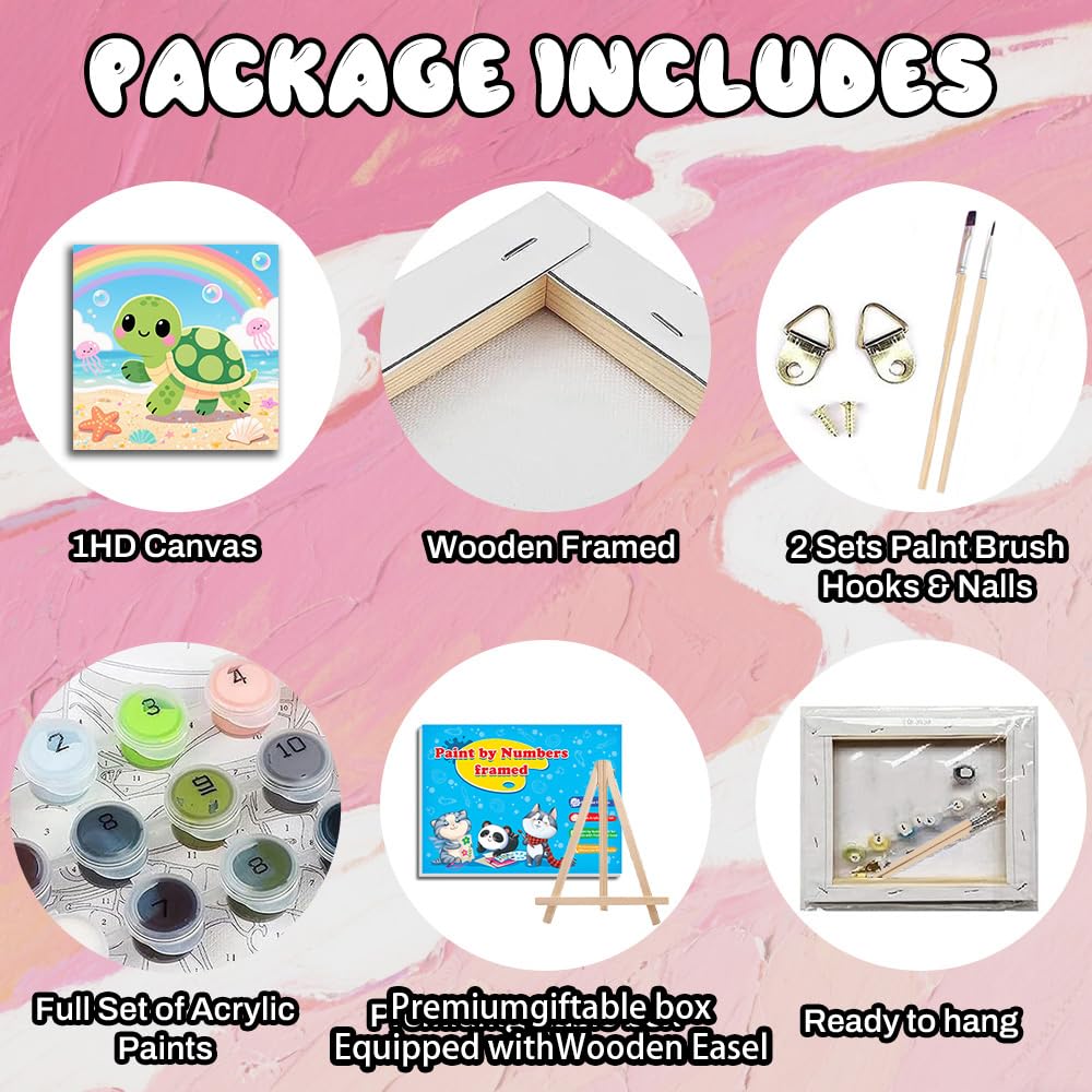 WEMEON Sea Turtles Paint by Numbers Kit for Kids with Frame and Easel, Easy Paint by Numbers Kits for Kids Ages 4-6, Small Painting by Number for Birthday Gift, Painting Party(10X10inch)