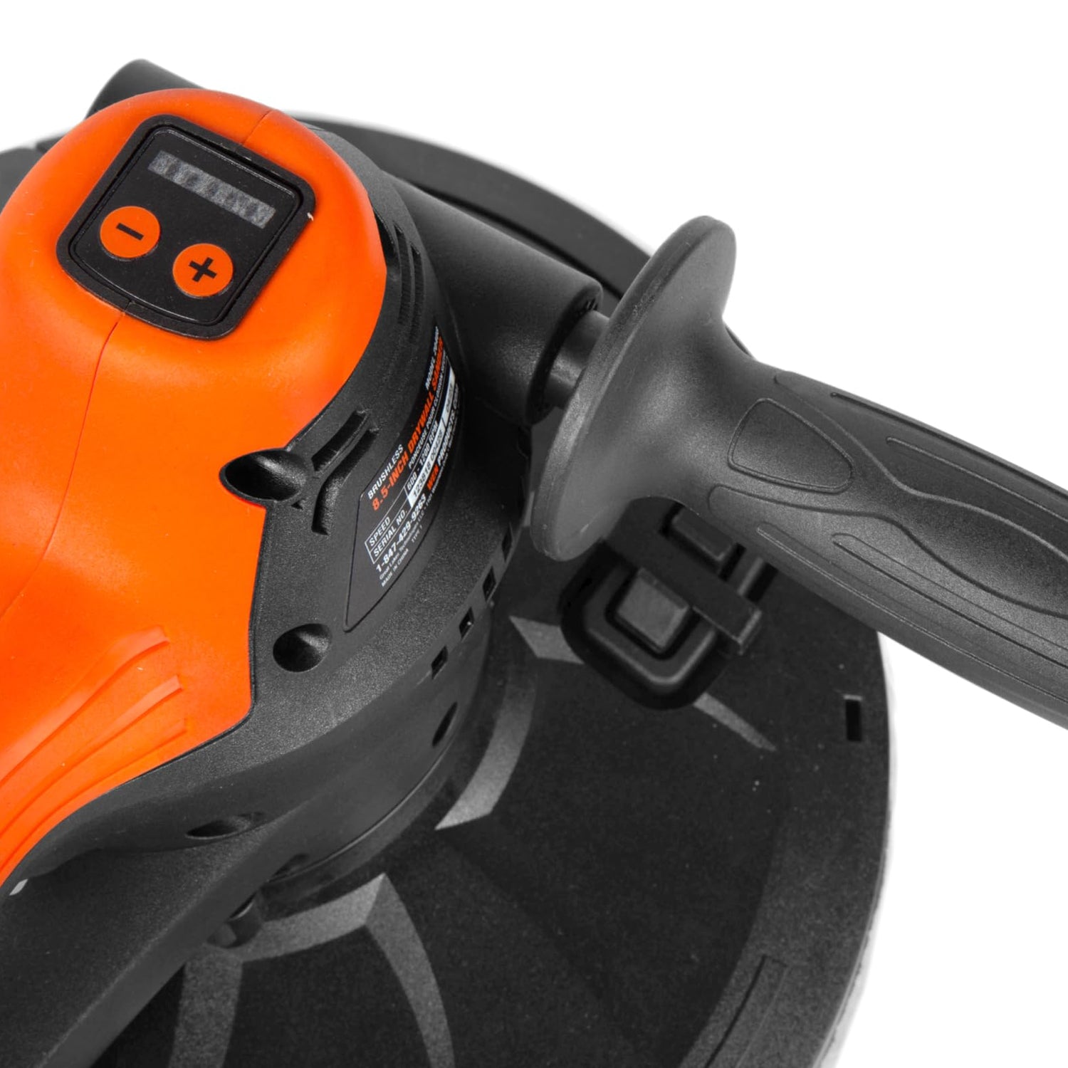 Details: Remember when you had the smoothest drywall in town? The WEN 20V Brushless Handheld Drywall Sander with 4.0Ah Battery and Charger makes sanding drywall easier than ever. Powered by a 20V Lithium battery pack, this tool can operate quietly and efficiently without cords, and the brushless motor delivers a longer runtime and greater longevity. The included 4.0 amp-hour lithium-ion battery delivers consistently powerful performance at any level of charge, features an onboard LED charge gauge, and is cross-compatible with the entire WEN 20V Max Lithium-Ion Cordless Power Tool line. The variable speed adjustment can operate between 600 and 1200 RPM, which you can track using the handy LED indicator. And using the last speed memory function, the sander will remember where you left off on your latest project. Switch easily between rough and fine sanding with the stationary and floating sanding pad modes. You’ll be able to handle automatic dust removal with the included dust hose and collection bag, and connecting to a vacuum using the 1-¼” adapter has never been easier. This sander is compatible with the entire DW-series of sandpaper, including models DW60SP, DW80SP, DW120SP, DW150SP, DW180SP, DW240SP, DW400SP. The sander’s packing list includes eight hook-and-loop sanding discs (two 150-grit pieces, two 180-grit pieces, two 240-grit pieces, and two 400-grit pieces). And because it’s a WEN product, your Variable Speed Drywall Sander comes backed by a two-year warranty, a stocked inventory of replacement parts, and a friendly customer helpline, all to make sure you remember WEN.
