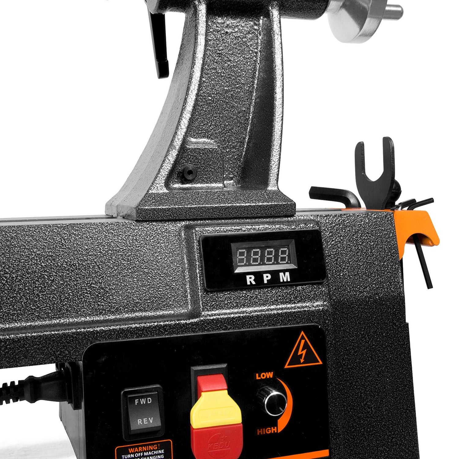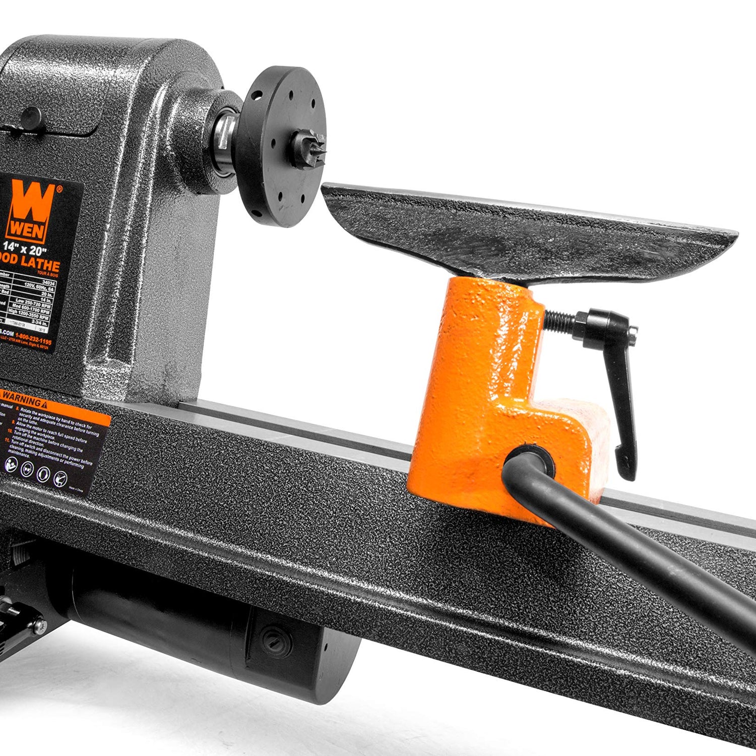 Details: Remember when you could turn your own table legs? Fill your house with as many table legs as you can with the WEN 14-Inch by 20-Inch Variable Speed Wood Lathe. Adjust the variable speed anywhere from 250 to 3550 rotations per minute. The 6A motor provides maximum power while the sturdy 120+ pound build prevents walking and wobbling during operation. This beast of a lathe features MT2 spindle and tailstock tapers to tightly hold your workpieces, along with an 8-inch tool rest for chisel and tool support during operation. The easy-to-use lever clamping system makes adjustments to both the tool rest and the tailstock simple and precise. The WEN Wood Lathe also includes a spur center, live center, a flat wrench, a knockout rod, 4 hex wrenches (3, 4, 5, and 12 mm), an onboard accessory holder, and a 4 inch faceplate for turning bowls, cups and other workpieces. And, because its a WEN product, your lathe comes backed by a two-year warranty, a nationwide network of skilled service technicians, and a friendly customer help line. Remember when you could turn pens, bowls, cups, chess pieces and more? Remember WEN.