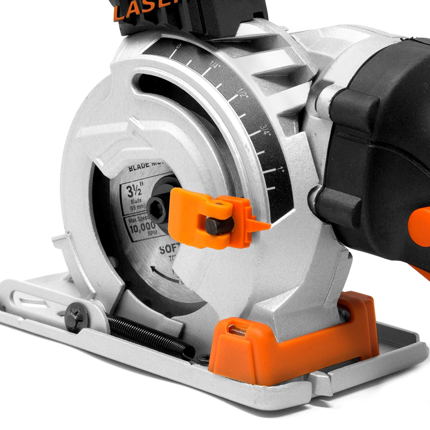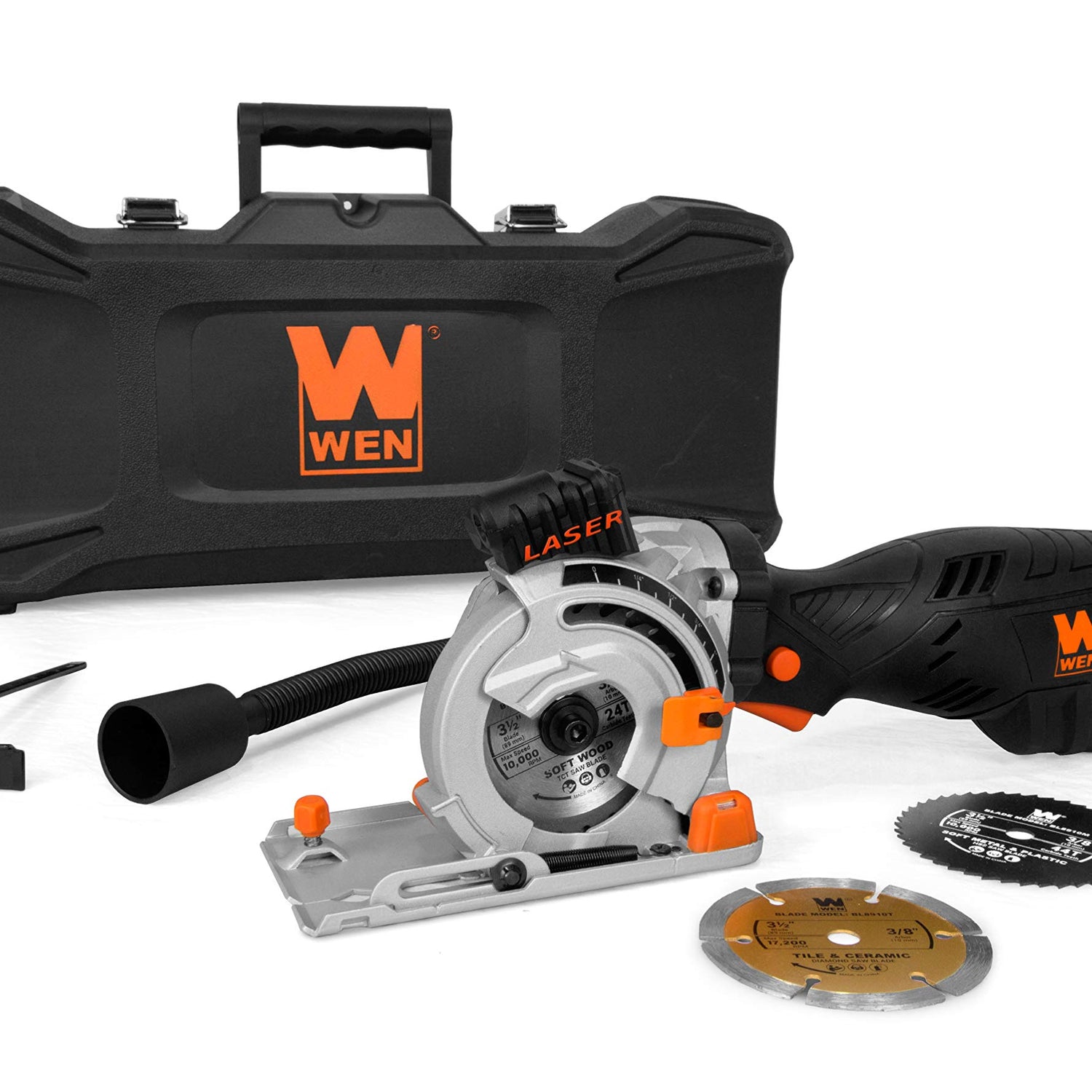 WEN 3620 5-Amp 3-1/2-Inch Plunge Cut Compact Circular Saw with Laser, Carrying Case, and Three Blades