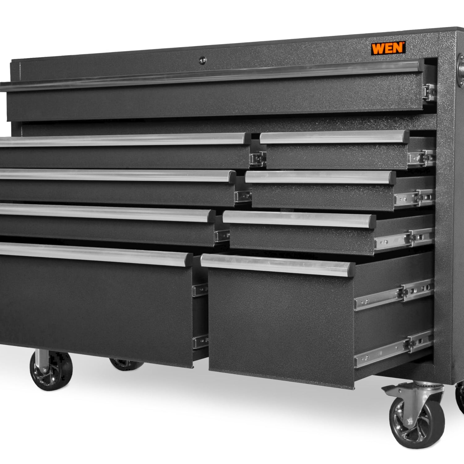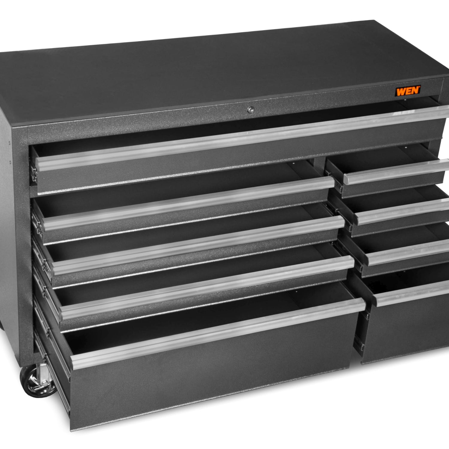 Details: Remember when your tools were perfectly organized? The WEN Tool Storage series provides the ideal storage solution for woodworkers, mechanics, or anyone else looking for the best in a 52-inch tool storage system. Heavy-duty powder-coated 21-gauge steel construction makes this stylish storage cabinet perfect for at home use or in the most demanding professional environments. Store your tools in any of the nine drawers, including one 47.5 x 15.5 x 3.5-inch drawer, three 32 x 15.5 x 3-inch drawers, one 32 x 15.5 x 9.5-inch drawer, three 12.5 x 15.5 x 3-inch drawers, and one 12.5 x 15.5 x 9.5-inch drawer. Each drawer features a 100-pound rated weight capacity, soft-close ball bearing slides, and protective drawer liners. Maximize safety and minimize theft with the internal locking system. Designed for use with the WEN GG531T 52-Inch 6-Drawer Tool Chest. And, because it is a WEN product, your tool chest comes backed by a two-year warranty, a stocked inventory of replacement parts, and a friendly customer help line, all to make sure you remember WEN.