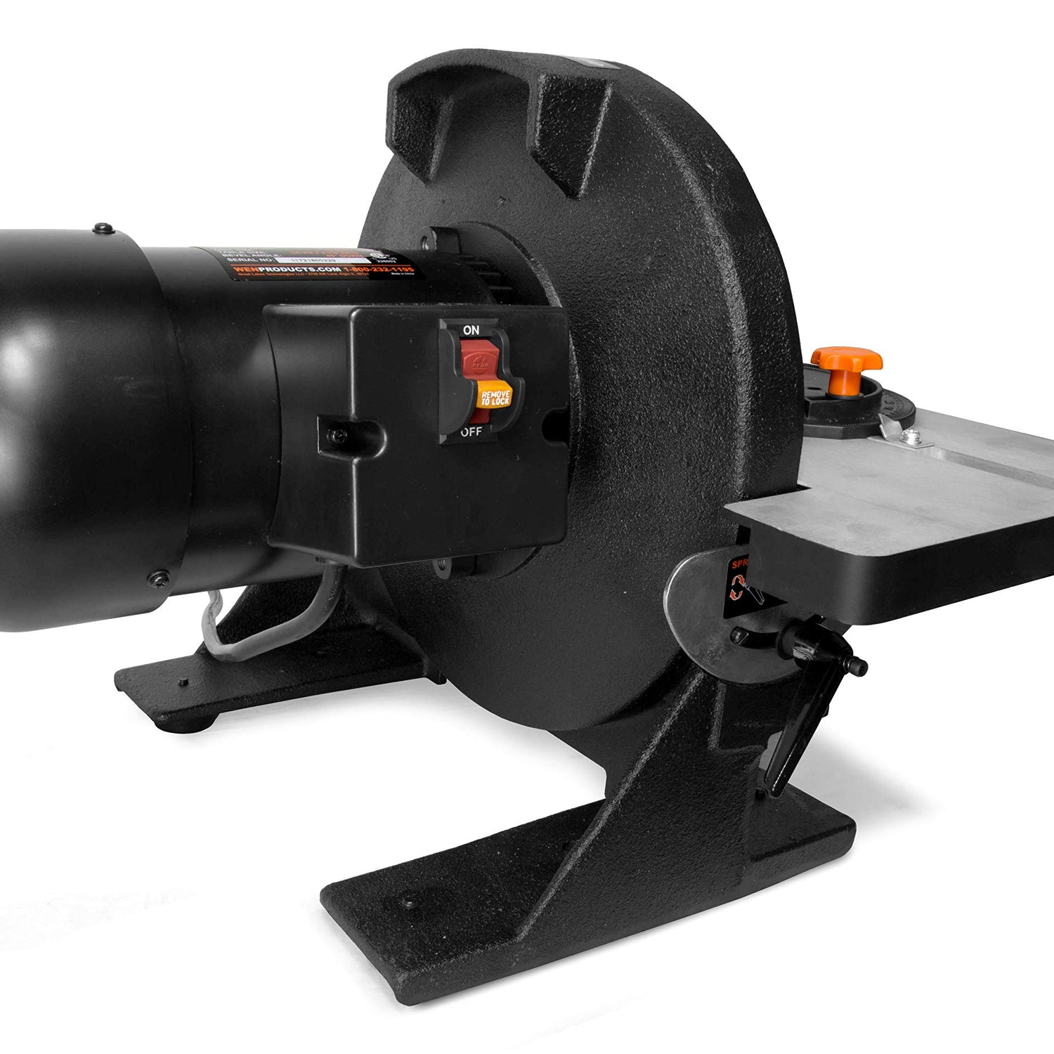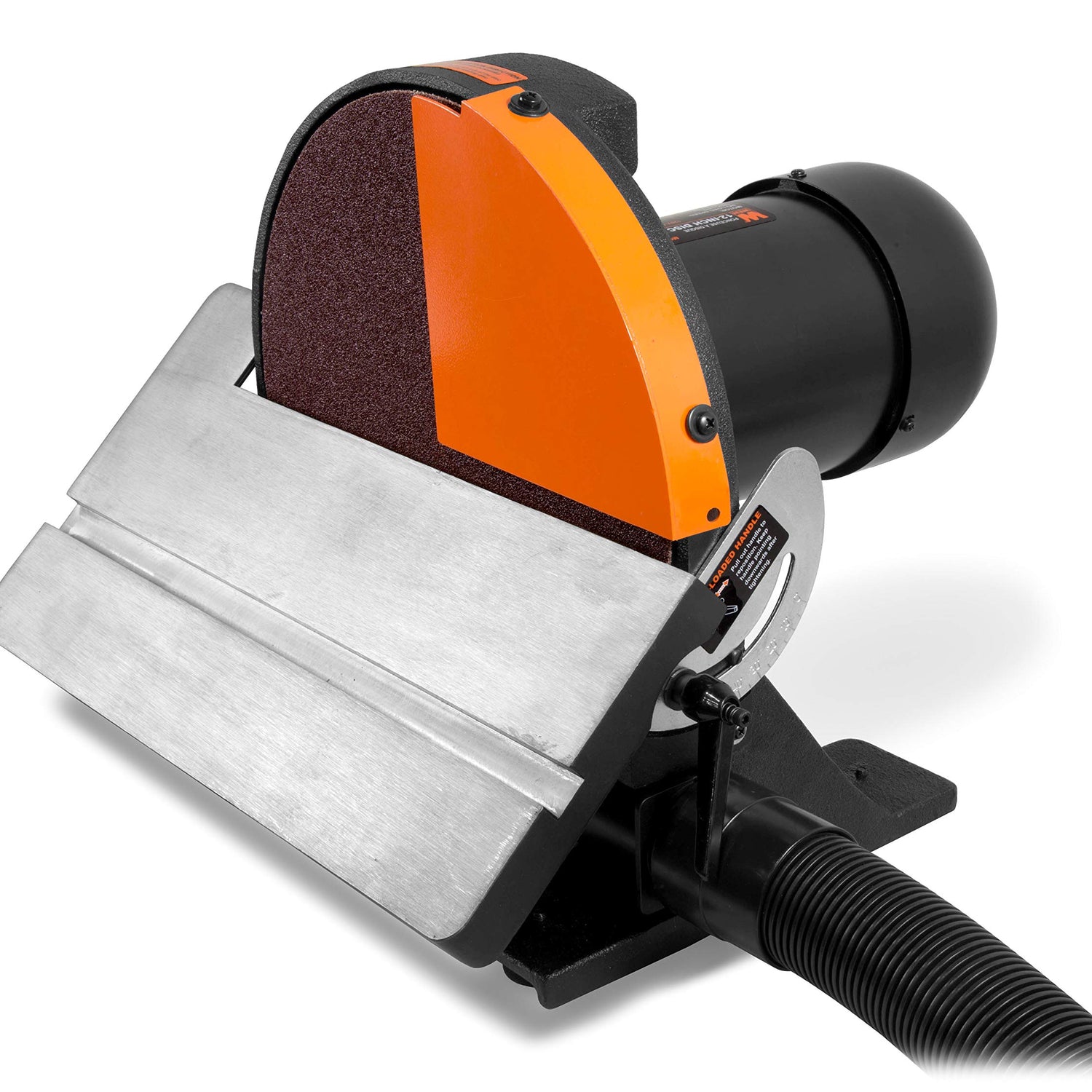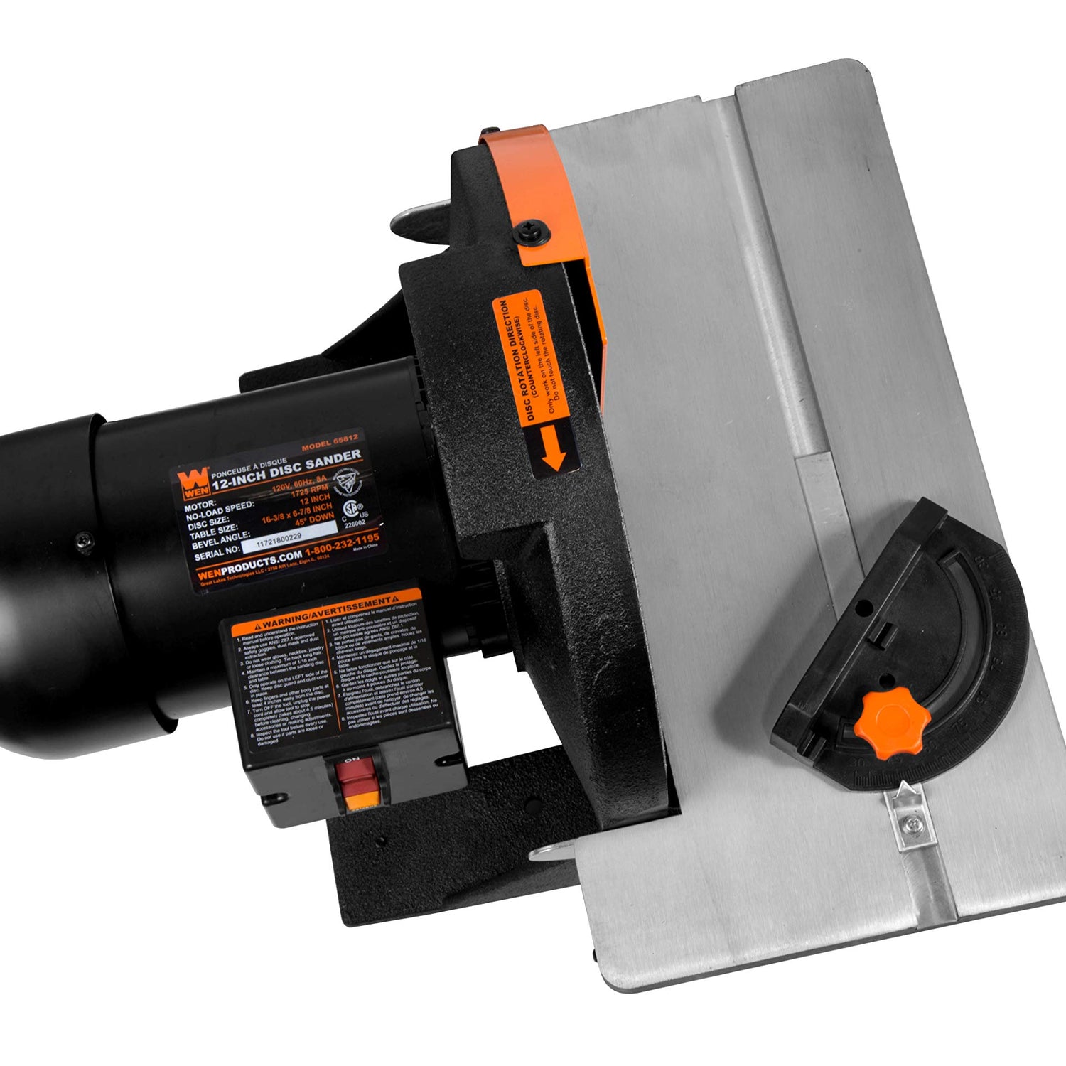 Details: Remember when you could sand giant workpieces? Take on the biggest and the baddest with the WEN 12-Inch Benchtop Disc Sander. Our powerful 8-amp motor features a direct-drive design to maximize torque during operation. The spacious 5.5-by-15.5-inch table bevels up to 45 degrees for angled pieces. Combine that with the sliding miter gauge for a versatile sander that meets the needs of a variety of projects. This package also includes a pre-installed adhesive-backed 60-grit sanding disc, an onboard 2-inch dust port, and a 2.5-inch-diameter dust hose. And because it’s a WEN product, your disc sander comes backed by a two-year warranty, a nationwide network of skilled service technicians, and a friendly technical support line, all to make sure you remember WEN.
