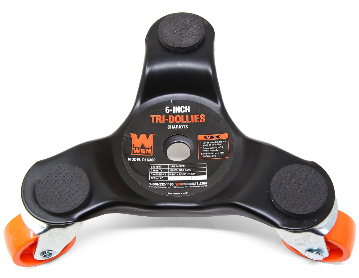 Details: Remember when you could move that couch with ease? Get a move on it with a set of WEN Tri-Dollies. This set of solid stamped steel moving dollies handles up to 1200 pounds worth of tables, boxes, sofas, tools, armoires, and more. You name it, these dollies will move it. The foam padding prevents marring during transportation while the three 1-1/2-inch ball-bearing swivel casters make for easy rolling in any direction. Each individual dolly is rated to handle up to 300 pounds of weight for a combined total capacity of 1200 pounds per set. Perfect for workshops, schools, offices, garages, and more. Remember when you could wheel your life wherever you wanted? Remember WEN.