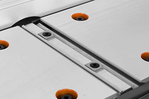 - Adjustable 19-3/4 by 4-1/4-inch fence bevels up to 45 degrees