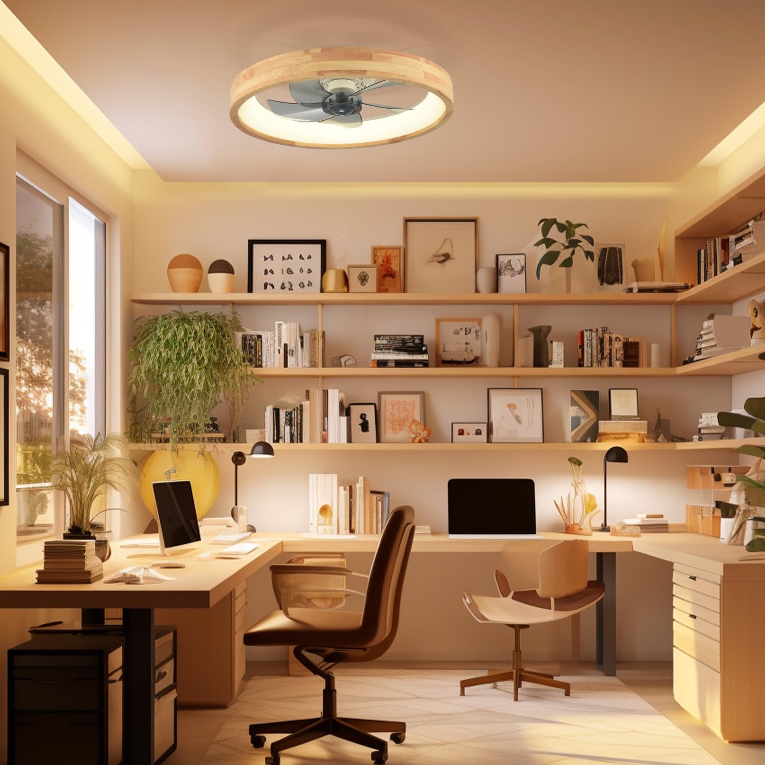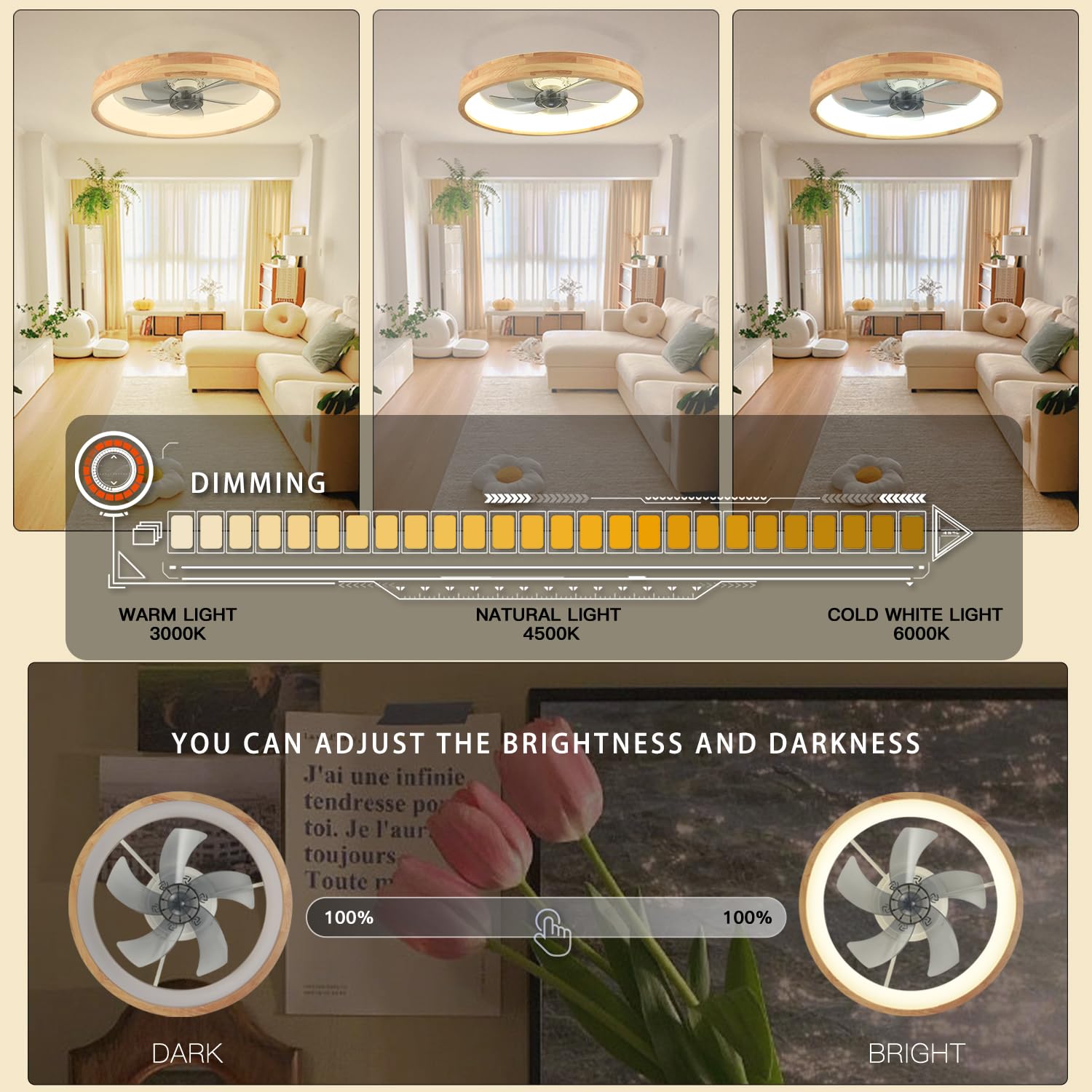 - Ceiling fans with lights: The modern enclosed ceiling fan with light is designed with wooden edges, allowing you to enjoy the bright light and decorate the room. At the same time, our unique low profile small ceiling fan with light design can make the air in your room circulate well and keep the air fresh.