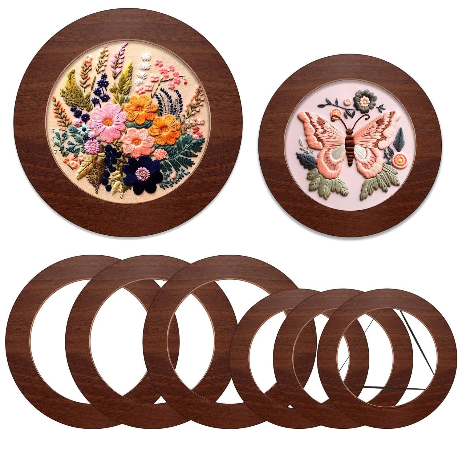 Wenqik 6 Pcs Wood Embroidery Frames for Display Embroidery Hoops Wood Display Frame for Finished Cross Stitch or DIY Art Craft Sewing Ornaments (8 Inch, 6 Inch, Round)