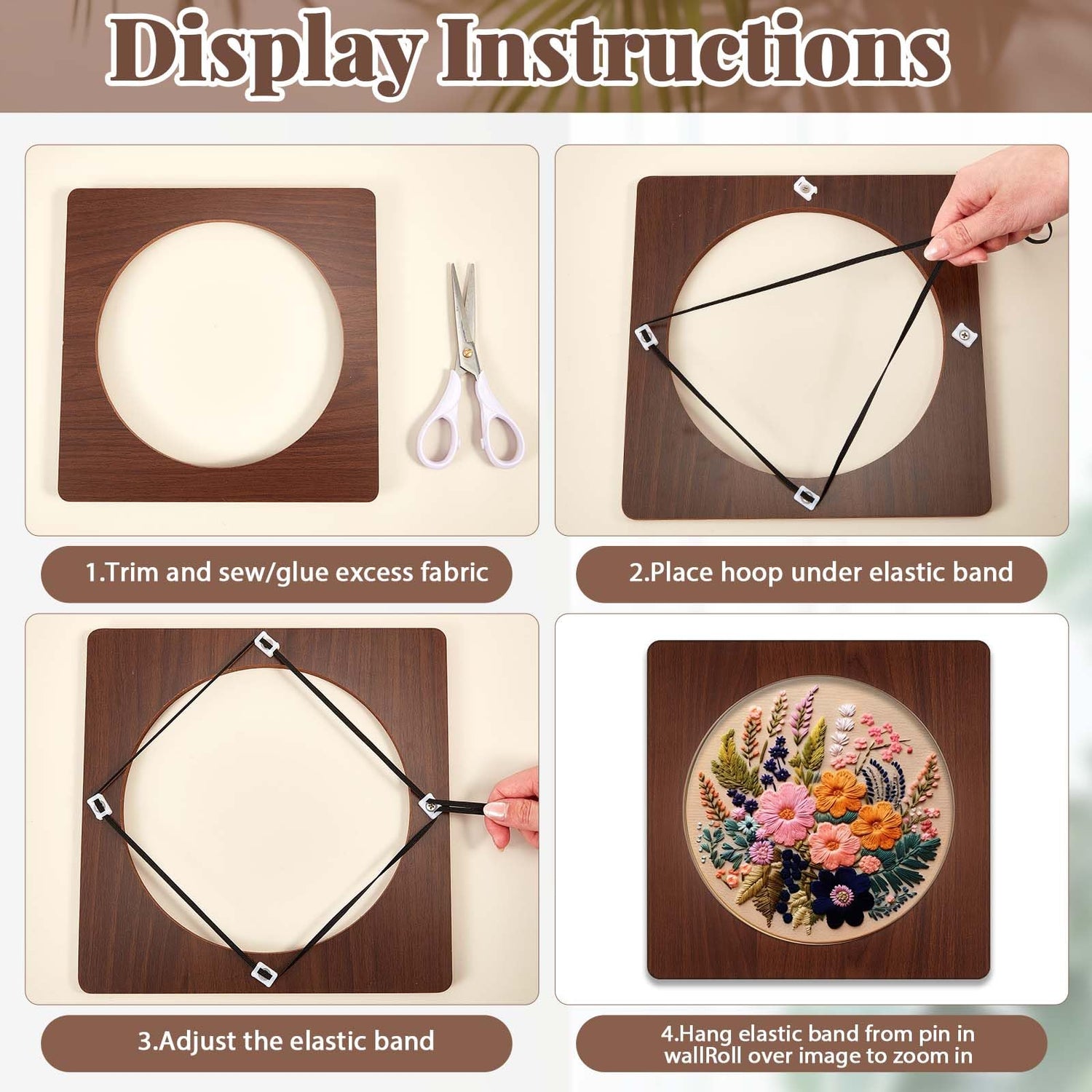 - Easy to Operate: the embroidery frame is designed for both beginners and professionals; No complicated installation process required; Thread the elastic cord into the hole and tie it, then slide the cross stitch hoop under the elastic triangle, adjust the elastic band fixed on the back of the frame, then turn the frame over and adjust the position as needed; Finally use the top edge of the elastic triangle to mount it on the wall studs