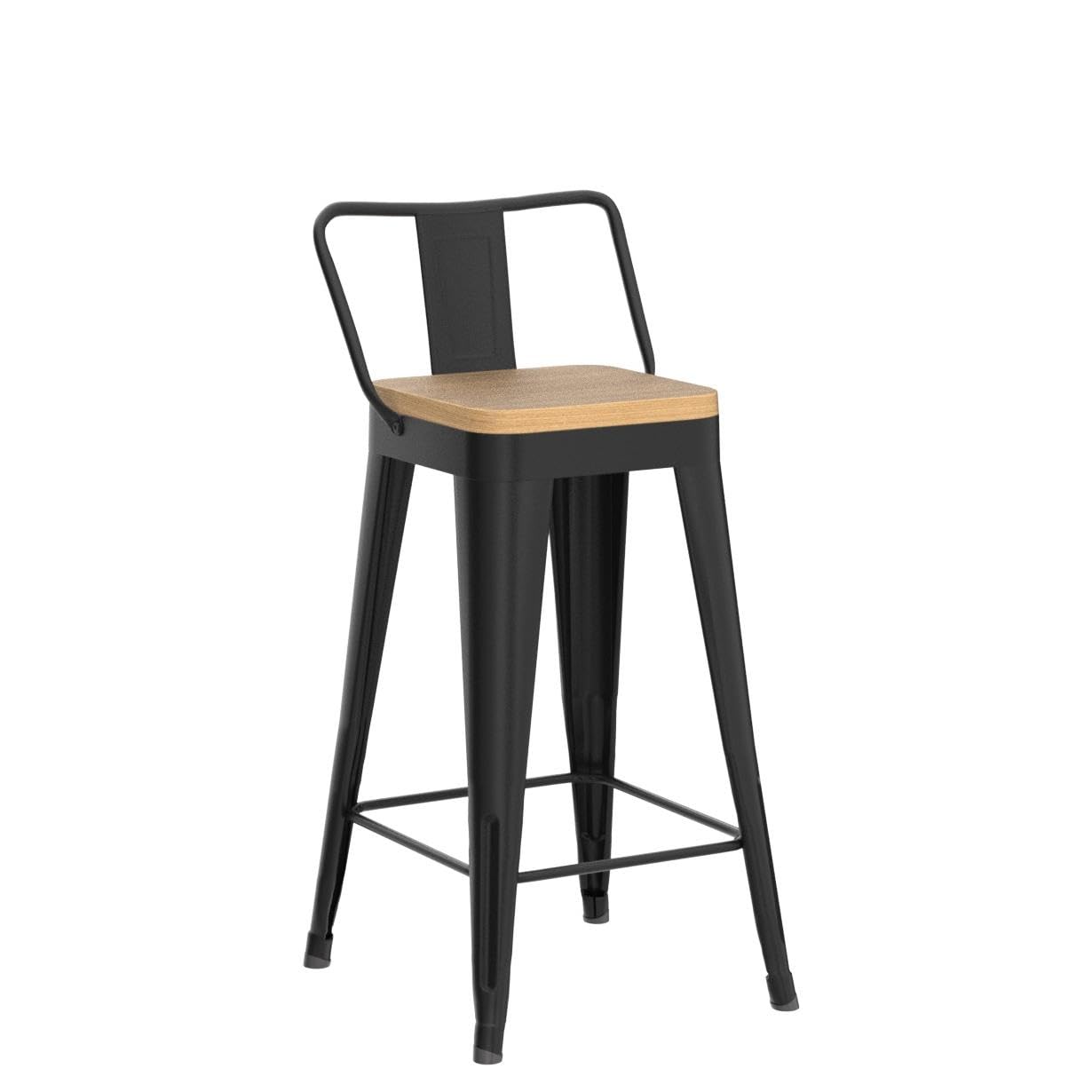 WENTMENT Metal Bar Stools Set of 4 Counter Height Bar Stools Barstools with Removable Back 24" Kitchen Bar Stools with Wooden Seat, Black