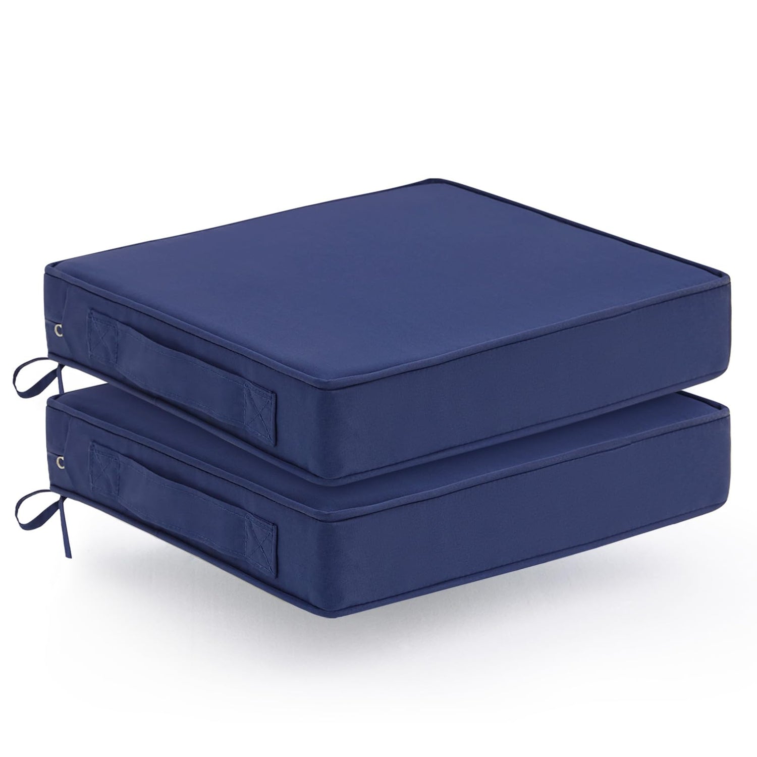 WEOAVRY Outdoor Chair Cushions Set of 2, Waterproof Patio Chair Cushions, Patio Furniture Cushions with Ties, Outdoor Wicker Replacement Seat Cushions, 19 x 19 x 3 inch, Blue
