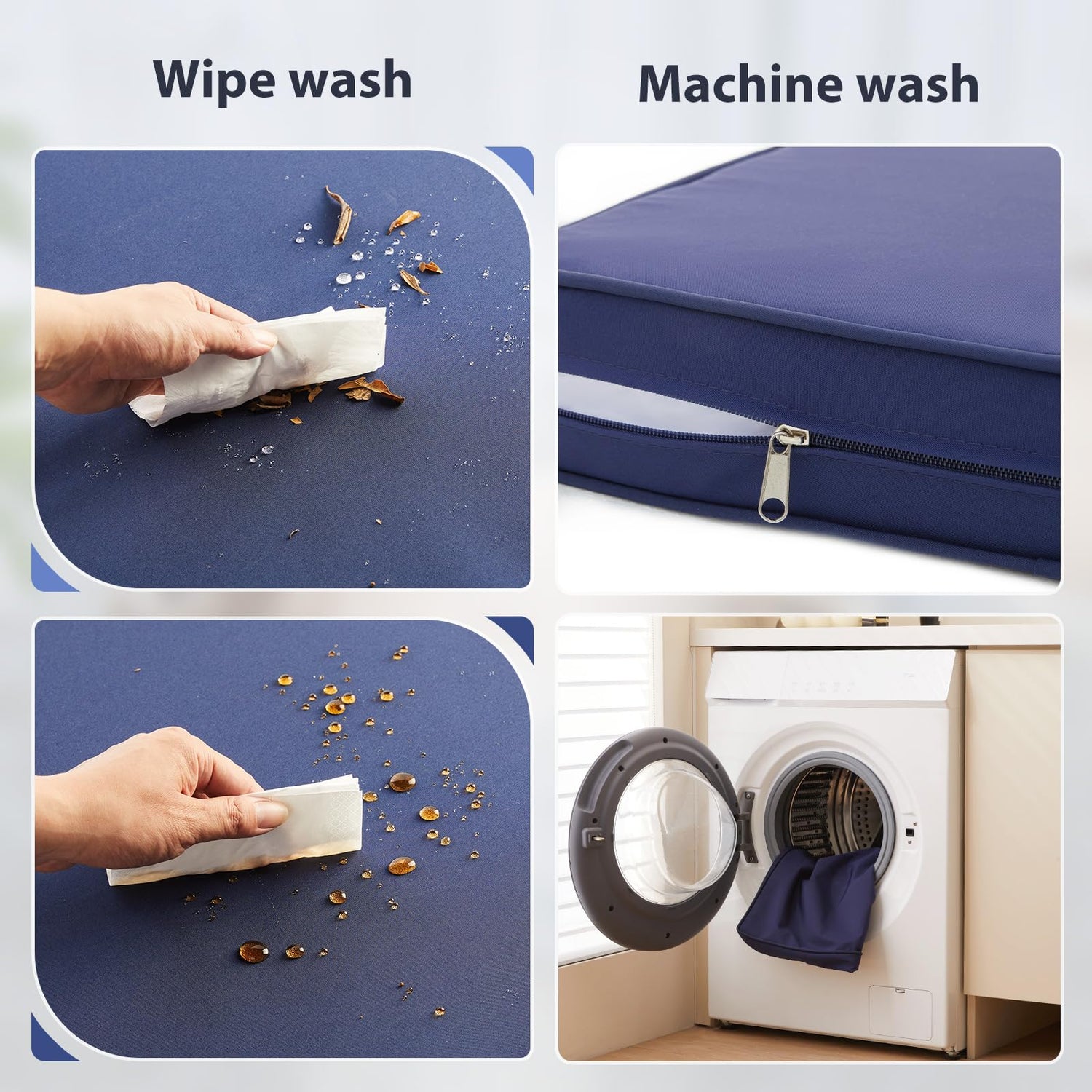 - 【Easy to Clean】Patio chair cushions set of 2 are easy to clean and maintain, so you can spend less time worrying about upkeep outdoor seat cushions for patio furniture. Simply wipe off dirt and spills with a damp cloth, or unzip seat cushions zippers, put the covers into the washing machine to wash.