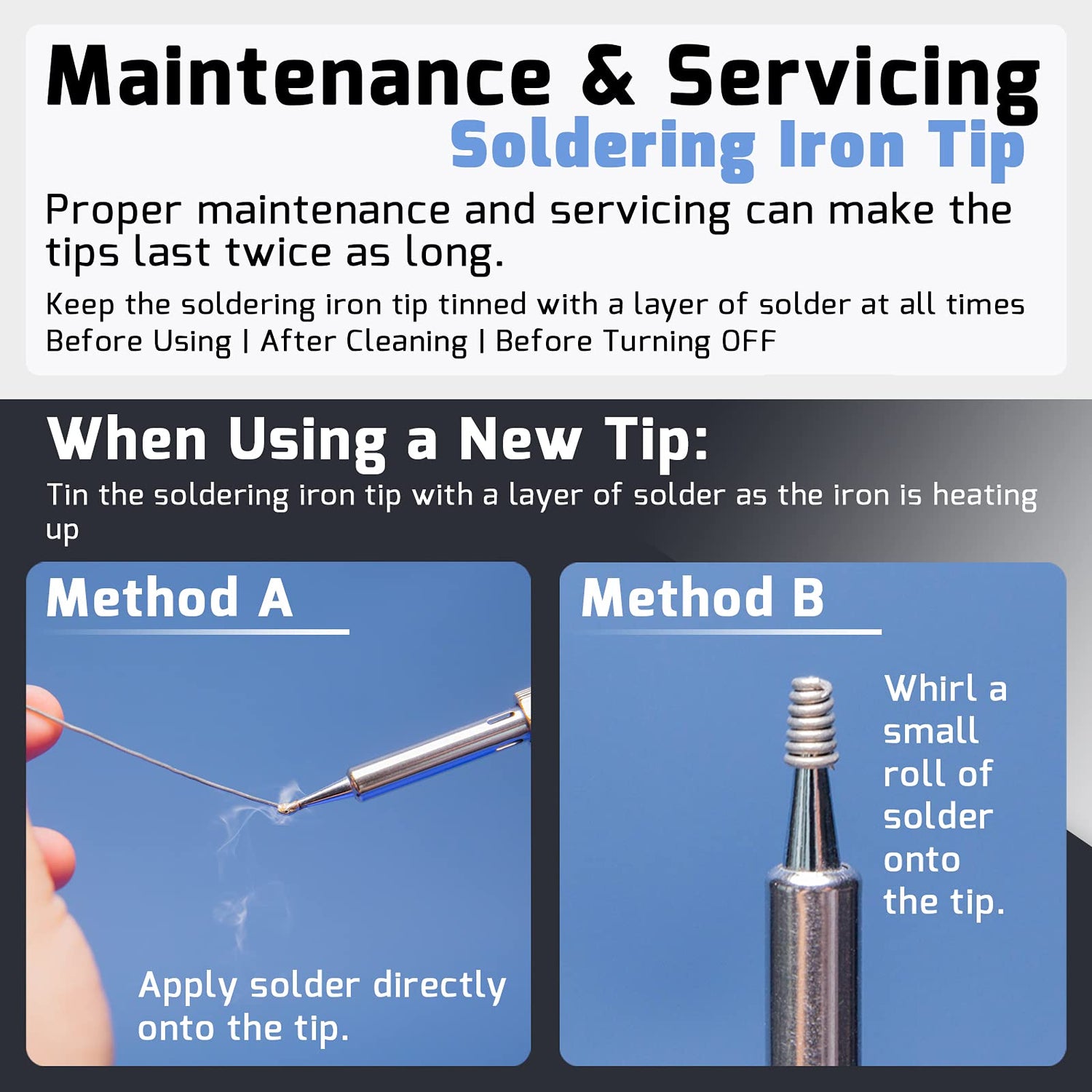 - High-power Performance: This soldering iron kit's 110W heating element allows the soldering iron to heat up fast. You can set your desired temperature from 90°C~480°C(194°F~896F°). Precise double numerical display presents the set temperature and actual temperature at the same time for you to monitor real-time temperature changes.