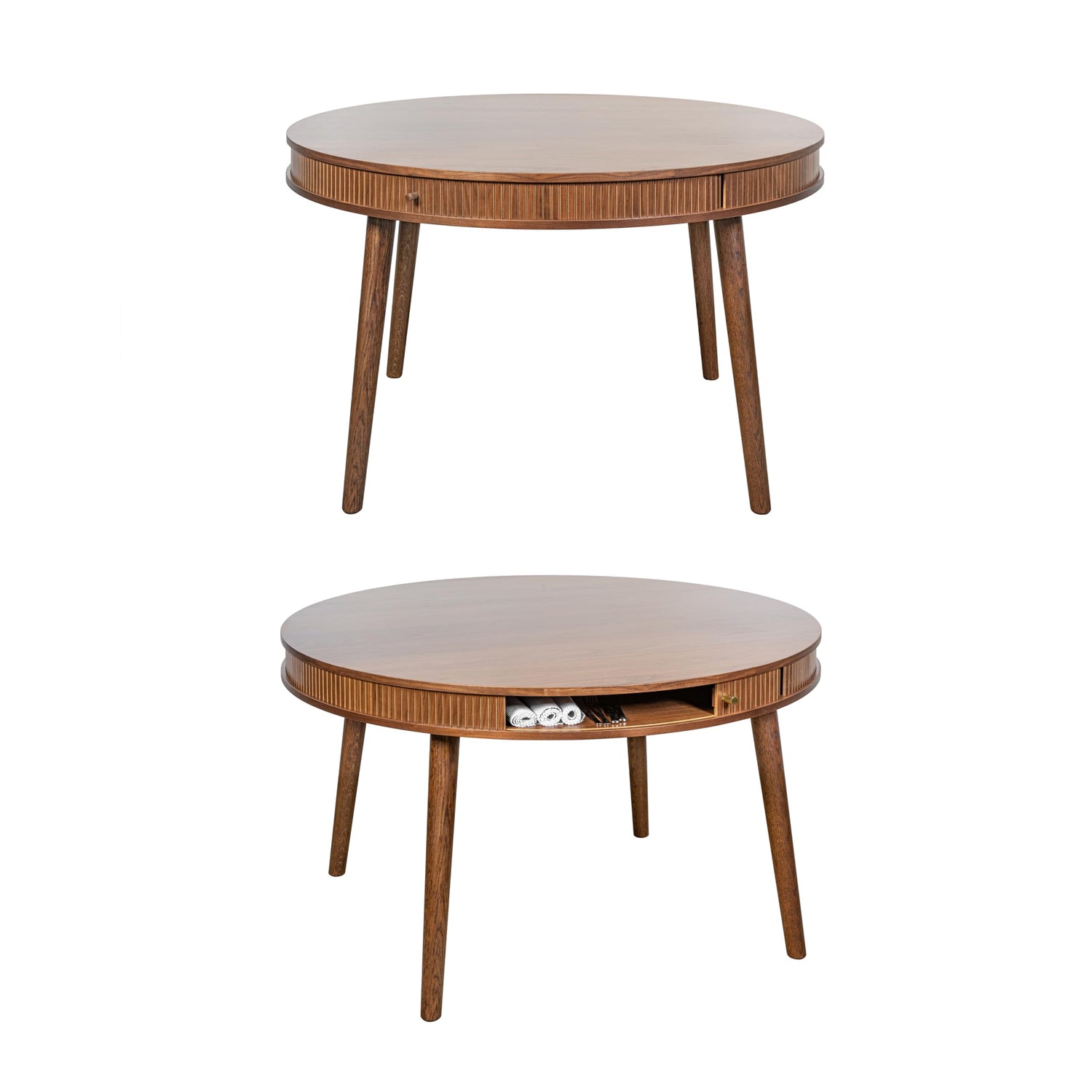 - ENJOY EFFORTLESS STORAGE of the modern table featuring 2 storage spaces hidden behind the sliding doors. The 4 seater round dining table (diameter 47‘’ x height 29.5’’) offers easy access to most frequently used tableware, serving utensils and entertainment essentials so you could have a clutter-free breakfast or dining atmosphere. You will receive 2 sets of door knobs - wood & messing.