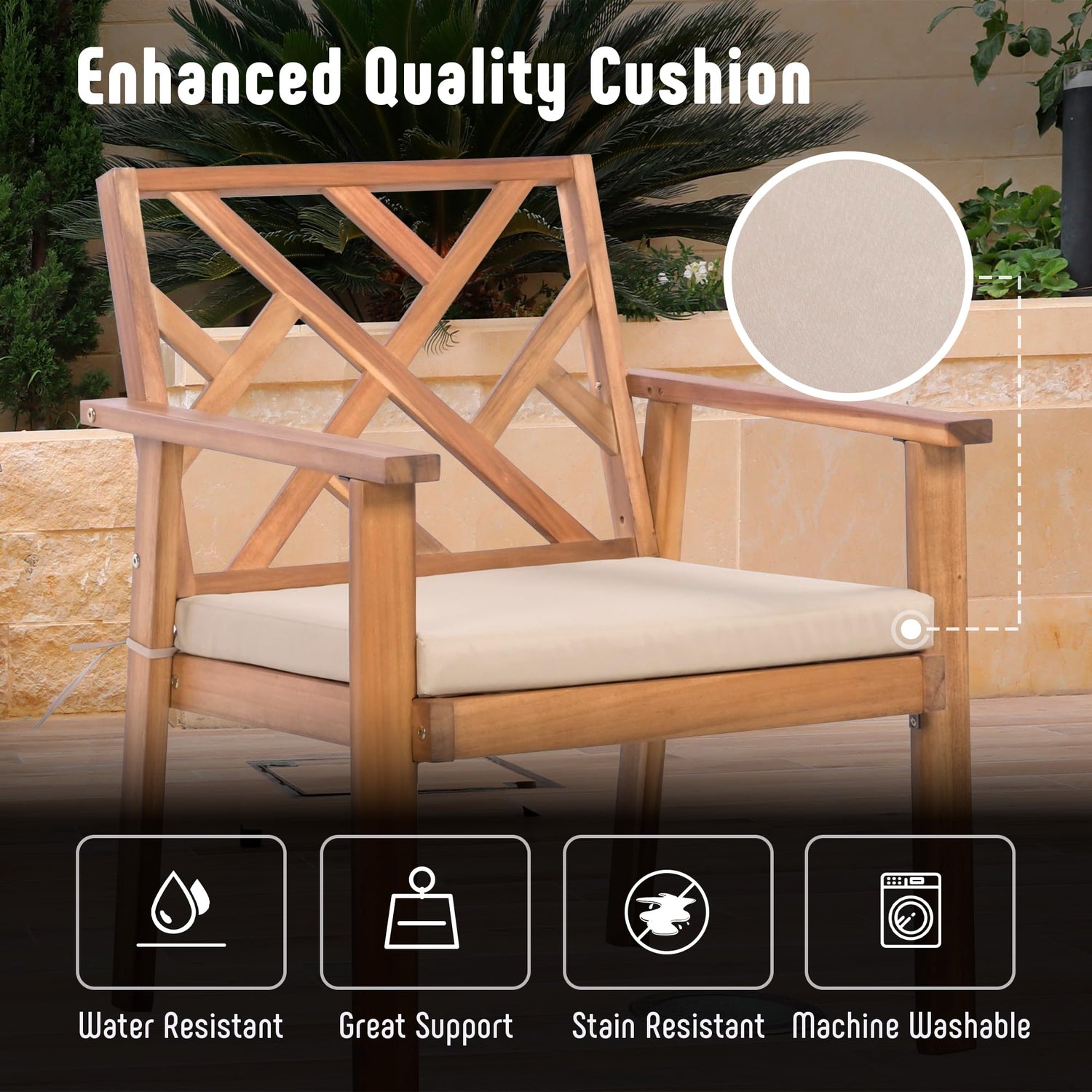 • Premium Outdoor Furniture: Werph outdoor conversation furniture set is all crafted from premium 100% acacia wood which is more durable and FSC certified. With a smooth processed, it is enhanced waterproof, ensuring furniture lasts for years in your outdoor space, like patio, garden, porch and courtyards