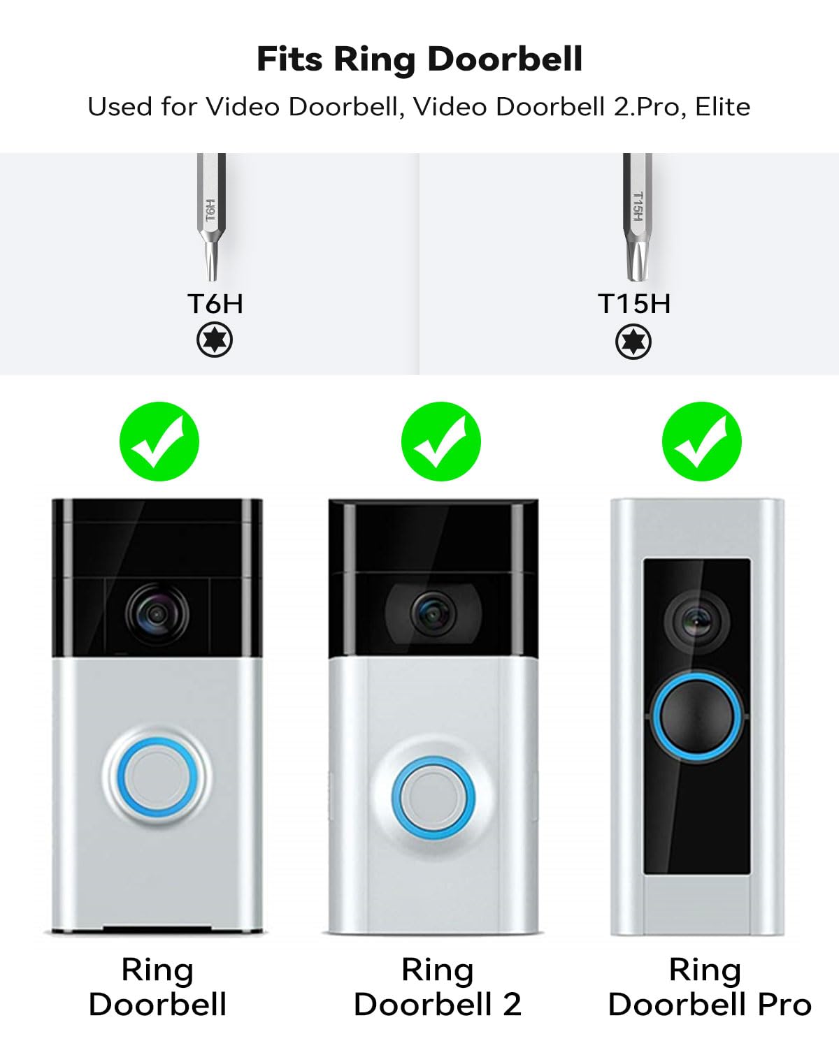 • [Fits Ring Doorbell] The T6 and T15 torx head used for Ring Video Doorbell, Ring Doorbell 2, Ring Doorbell Pro and Elite Battery Change, Charge & Replacement As Well As Wifi Password Reset Access, Security Removal Without Breaking.