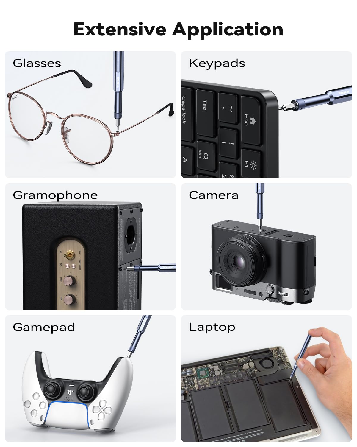 Details: [49in1, Household Must-Have] This small screwdriver head adopts double-sided design, making it more compact and comprehensive, it comes with 49 different bits (Phillips, Flat, Torx, Torx Security, Pentalobe, Hexagon, etc.). Whether you're a professional fixer or a home repair hobby, this mini screwdriver set has what you need to disassemble, repair, and reassemble phones, game consoles, wearables, laptops, desktops, tablets and much more!