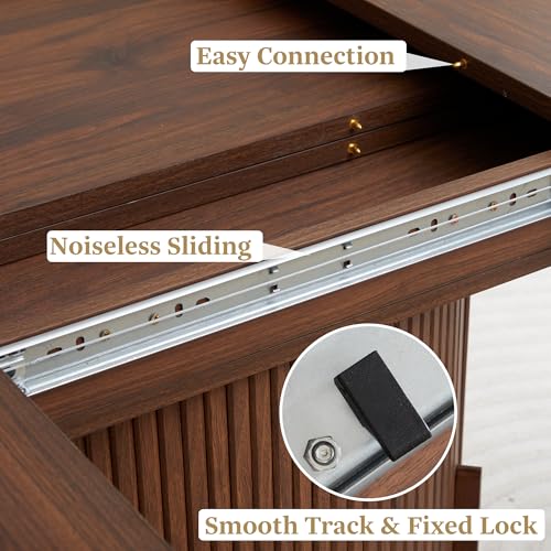 - 【Sliding Door Cabinet for Extra Storage】The elegant fluted base houses a practical two-tier cabinet with smooth sliding doors. Use this additional storage cabinet to neatly tuck away wine bottles, dinnerware, or table linens, helping you maintain a clutter-free dining space while adding a touch of modern farmhouse charm.