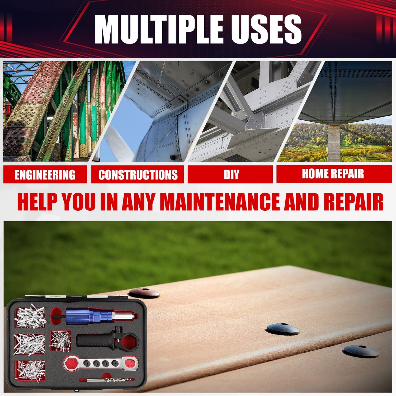 - [Advantage]: The riveting adapter can turn your cordless drill into a convenient riveting tool, making your riveting process easier and more efficient, with low noise, high efficiency, small size and easy portability.