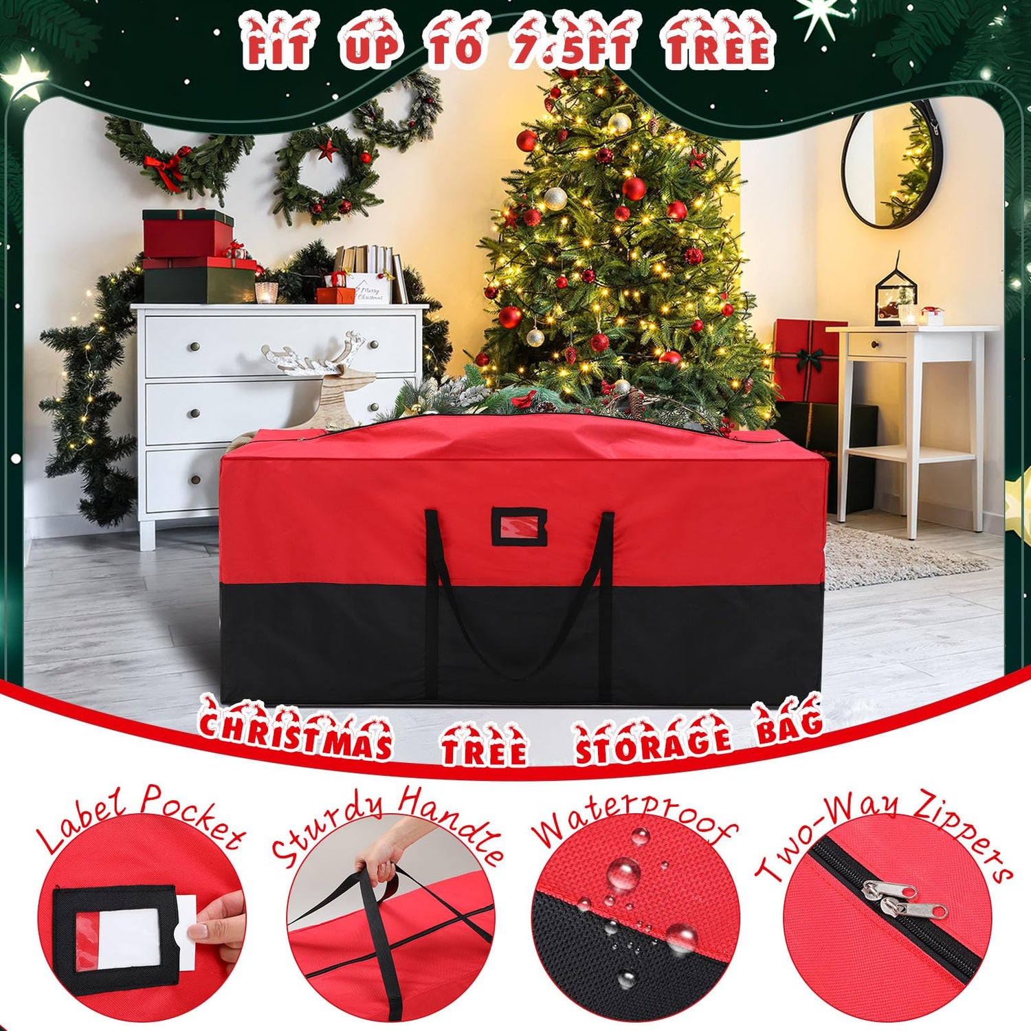 Wesnoy Large Heavy Duty Christmas Tree Storage Bag Waterproof Christmas Tree Storage Box with Handles Xmas Bin for Holiday Disassembled(Red, Black,7.5 ft)