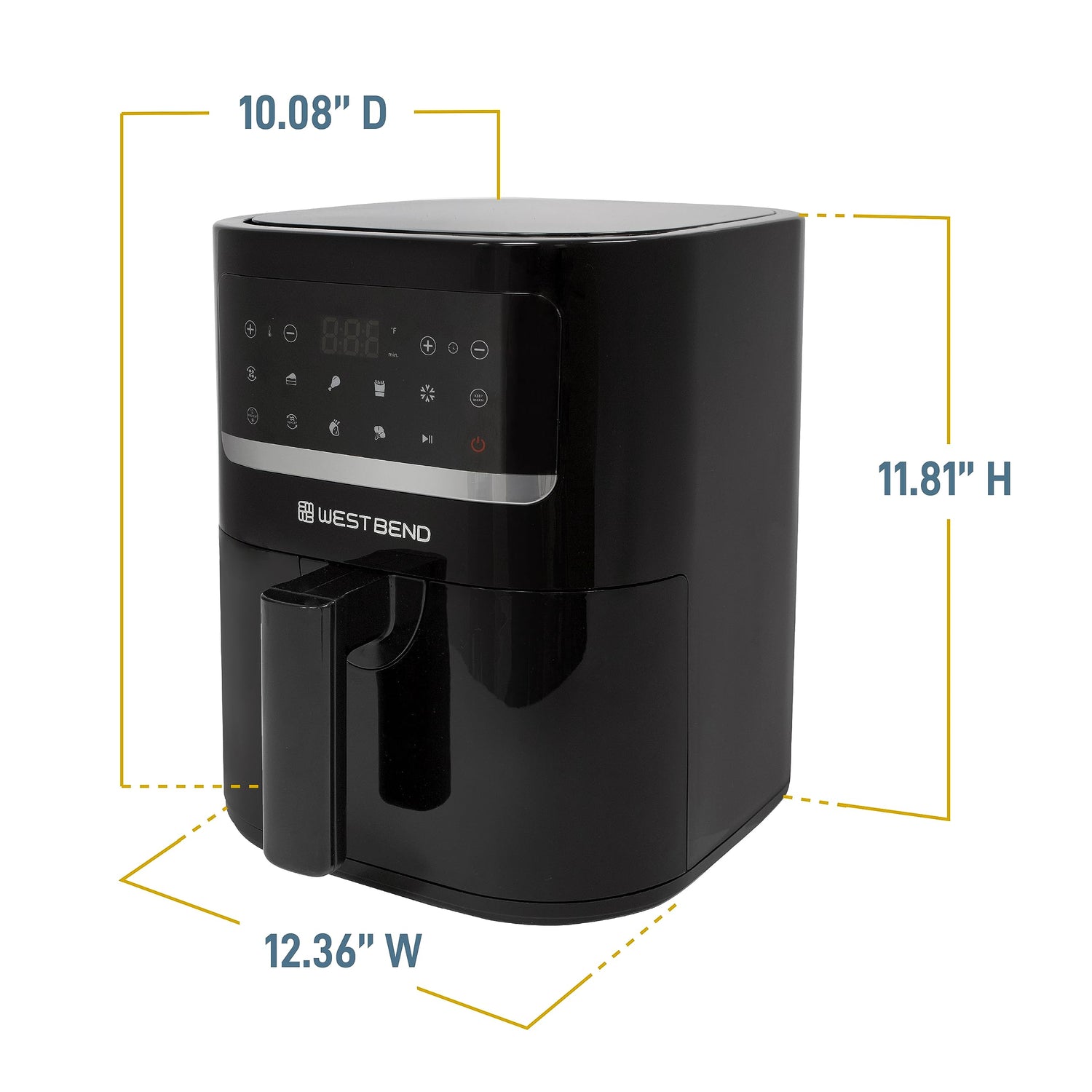 West Bend Compact Air Fryer 5-Quart Capacity with Digital Controls and 10 Cooking Presets, Nonstick Frying Basket, 1500-Watts, Black