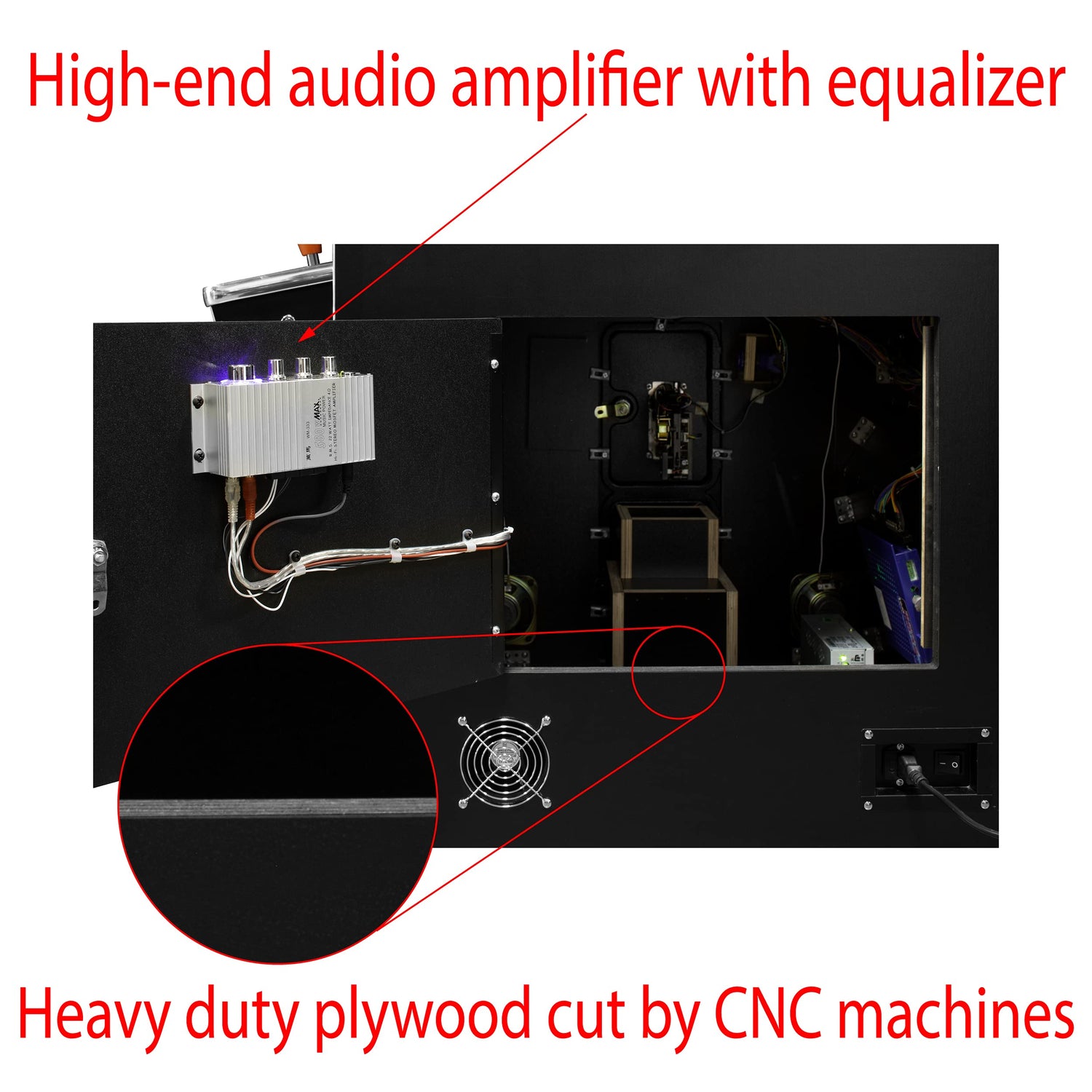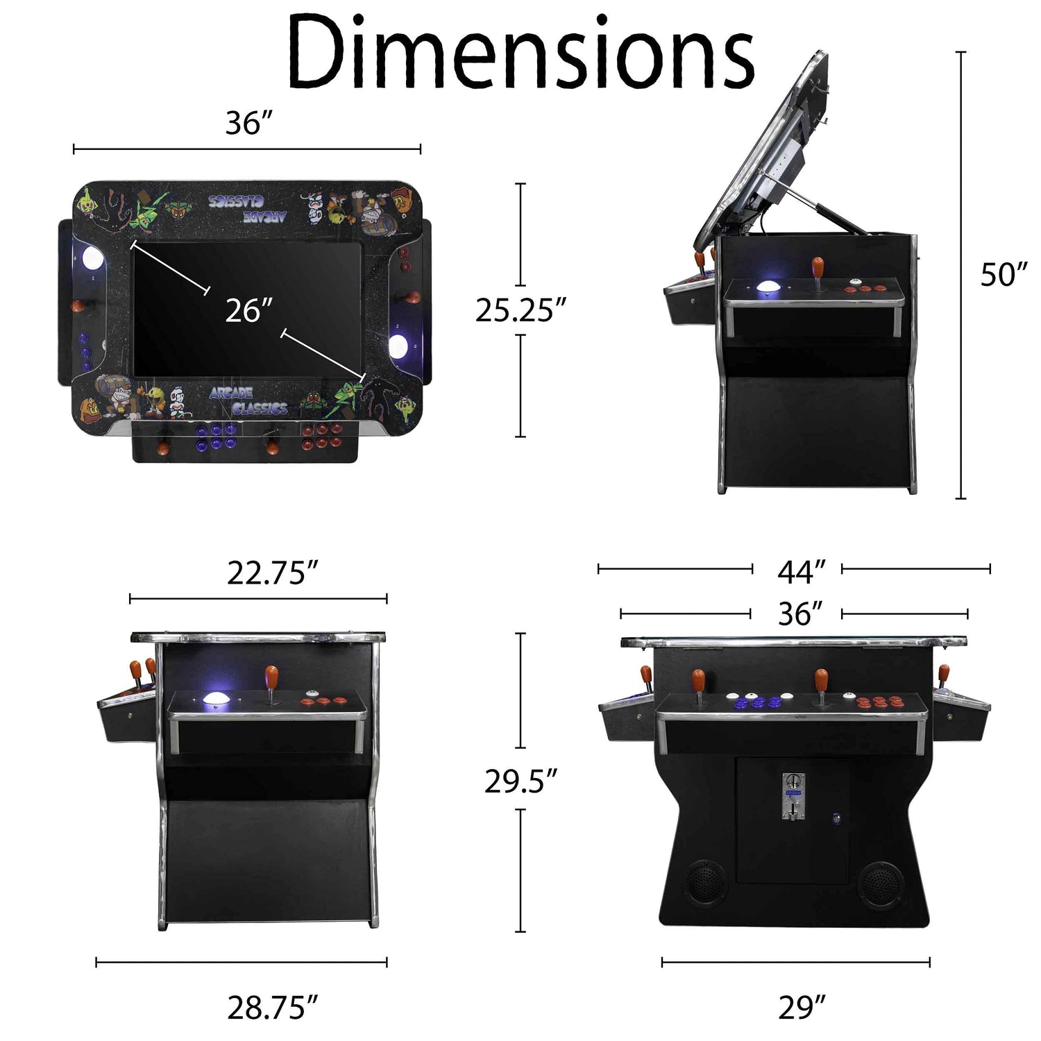 - 26-INCH LIFT UP LCD SCREEN - ADJUSTABLE AUDIO- UPGRADED POWER UNIT – EASY ACCESS CONTROL PANEL- Our arcade cocktail cabinet features a crisp and clear BRAND NEW (not refurbished like others) 26” LCD screen along with an extended tabletop and an upgraded larger power unit with wire harness and high-end audio amplifier with equalizer that lets you easily adjust the volume, treble, and bass.