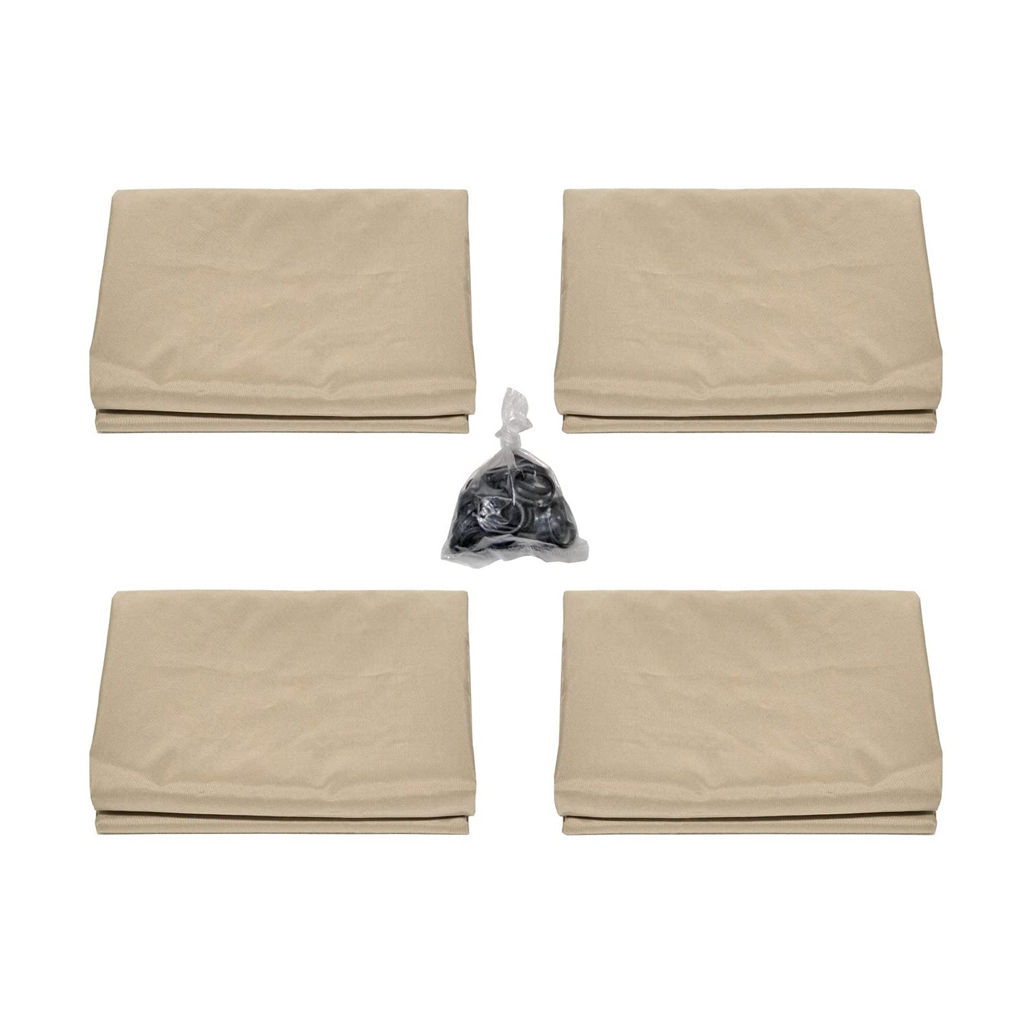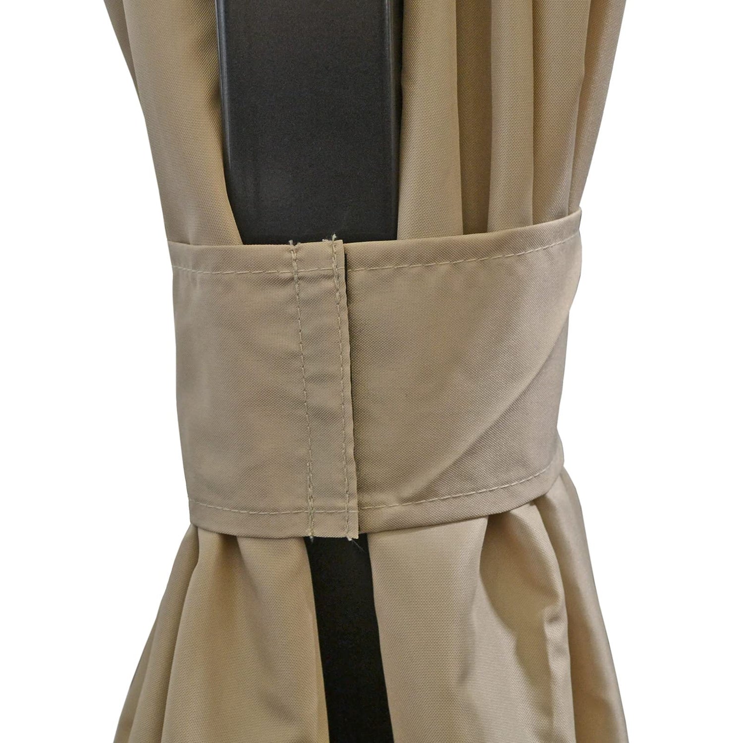 Details: Create a private space to host intimate outdoor gatherings, or to simply enjoy your quality time in the garden with our Universal Gazebo Sidewall Curtain Set. Designed to fit most of the 12' x 12' patio gazebo models, these replacement curtain panels are easy to install. Made from durable, weather-resistant polyester, these shades are ideal for blocking the sunlight, wind and rains out as well as providing private space for you, suitable for home garden and camping use. The double zipper in the middle of each panel allows the curtain to be opened and closed from either inside or outside on all four sides. The neutral color of beige will complement any patio or outdoor furniture. Perfect for getting away to your own private backyard hideaway!