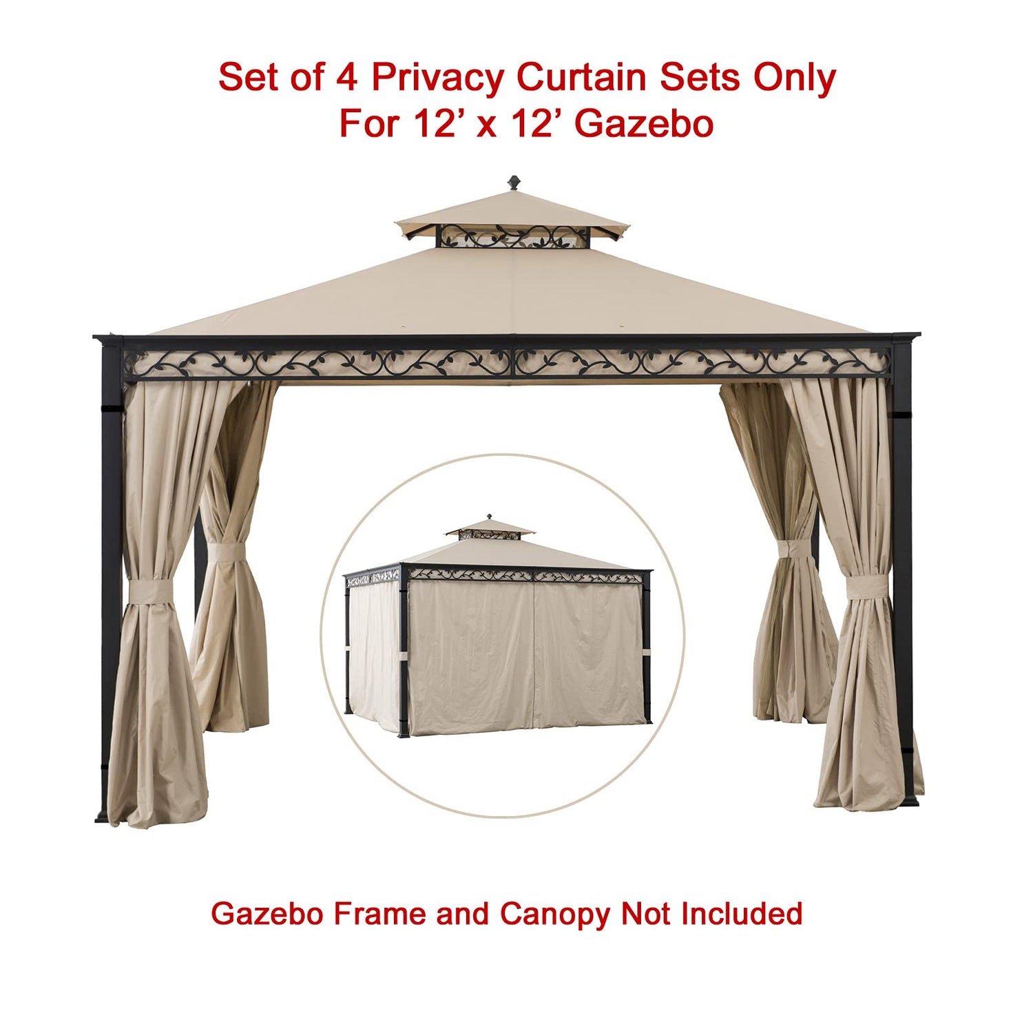 - Universal replacement privacy curtain panels designed to fit most 12ft x 12ft gazebo models, suitable for home garden and camping use. (NOTE: It is highly recommended to confirm the dimension of your gazebo prior to purchase.)