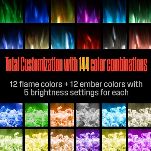 - CUSTOMIZE APPEARANCE: Up to 144 total color combinations for flames and embers, 5 independent brightness levels, and 5 flame burning speeds. Includes interchangeable faux log and Camphor wood/crystal ember bed sets for added visual decor.