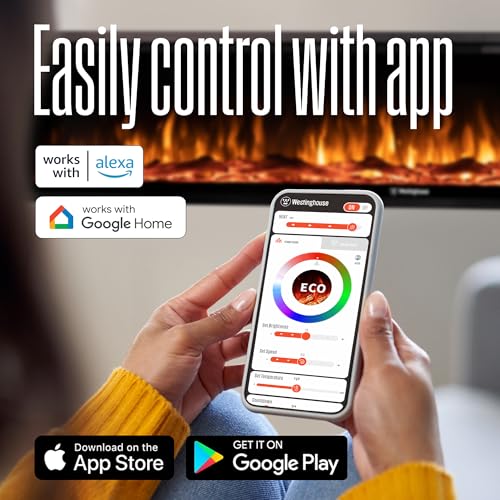 - MULTIPLE CONTROL MODES: Compatible with Alexa and Google Home to elevate your smart home experience. The electric fireplace can also be controlled using the Westinghouse app and the included remote.