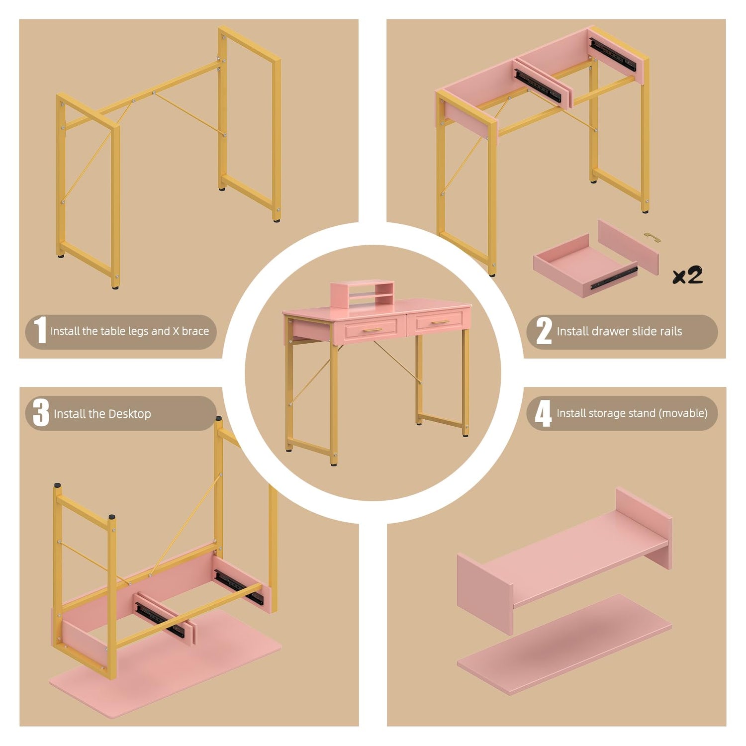 - [ Modern Vanity Desk ] - Classic pink tabletop paired with gold metal frame base, aesthetic with clean lines and sleek silhouette, it adds a touch of luxury to your interior design.