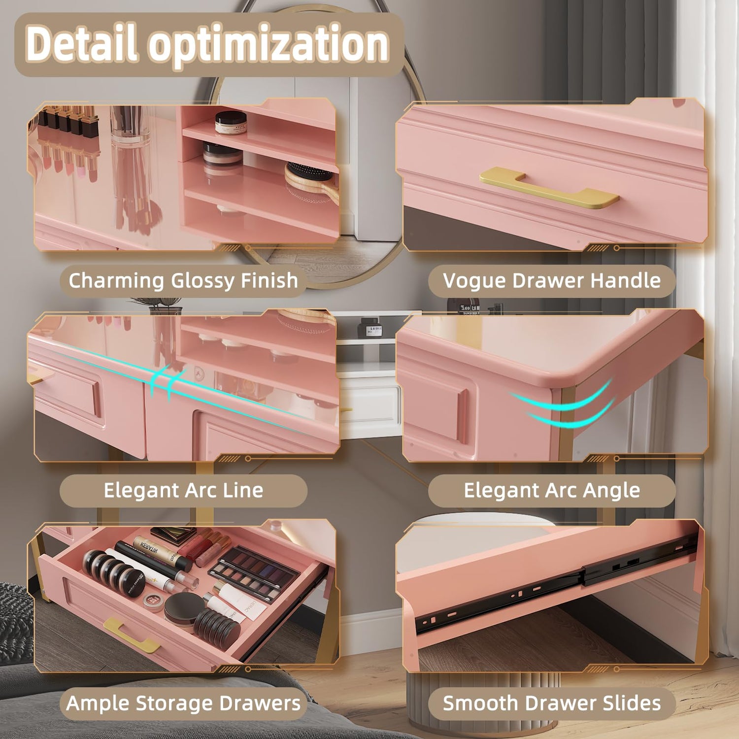 - [ Glossy Desktop ] - The desktop of vanity desk using piano paint is bright as mirror. Smooth top is easier to clean. Hard finish that keeps the desk looking new even after a long time.