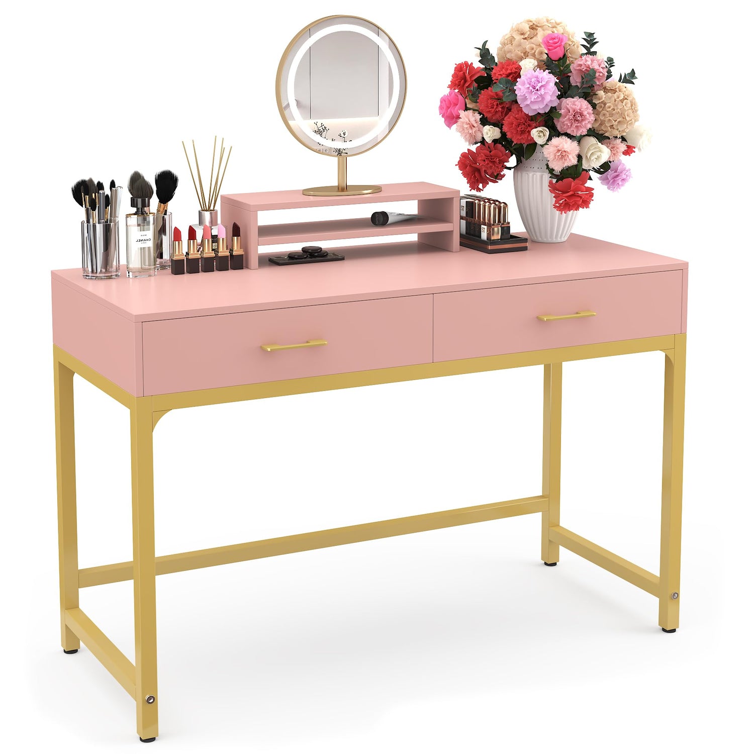 - REMOVABLE MONITOR STAND: This 2-in-1 women makeup desk with removable monitor stand. This makeup table can be used as a computer gaming desk or office desk. The elevated shelf can place your computer monitor, laptop, mirror, etc.