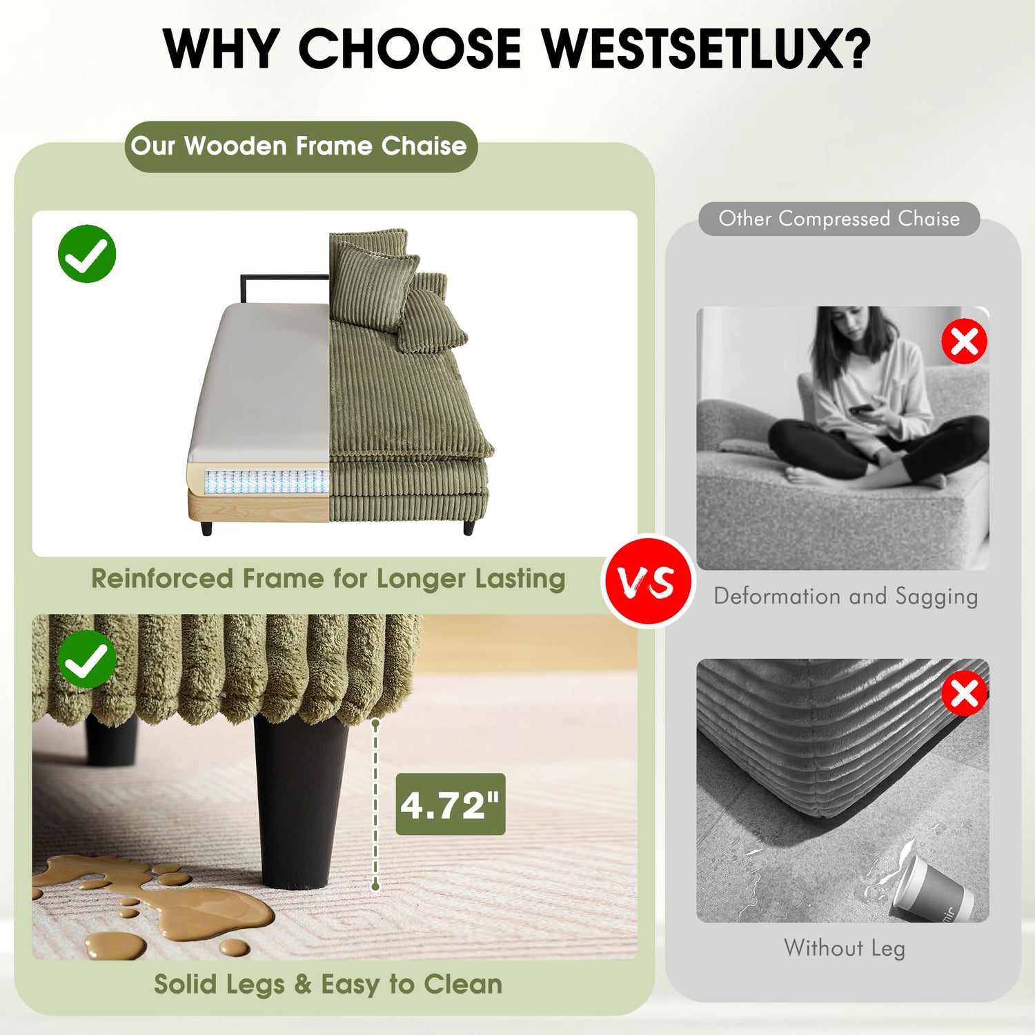 - 【Fits Any Room】With its clean lines and cozy finish, this oversized corduroy chaise sofa adds both warmth and style to any space—whether in your living room, bedroom, office, or apartment.