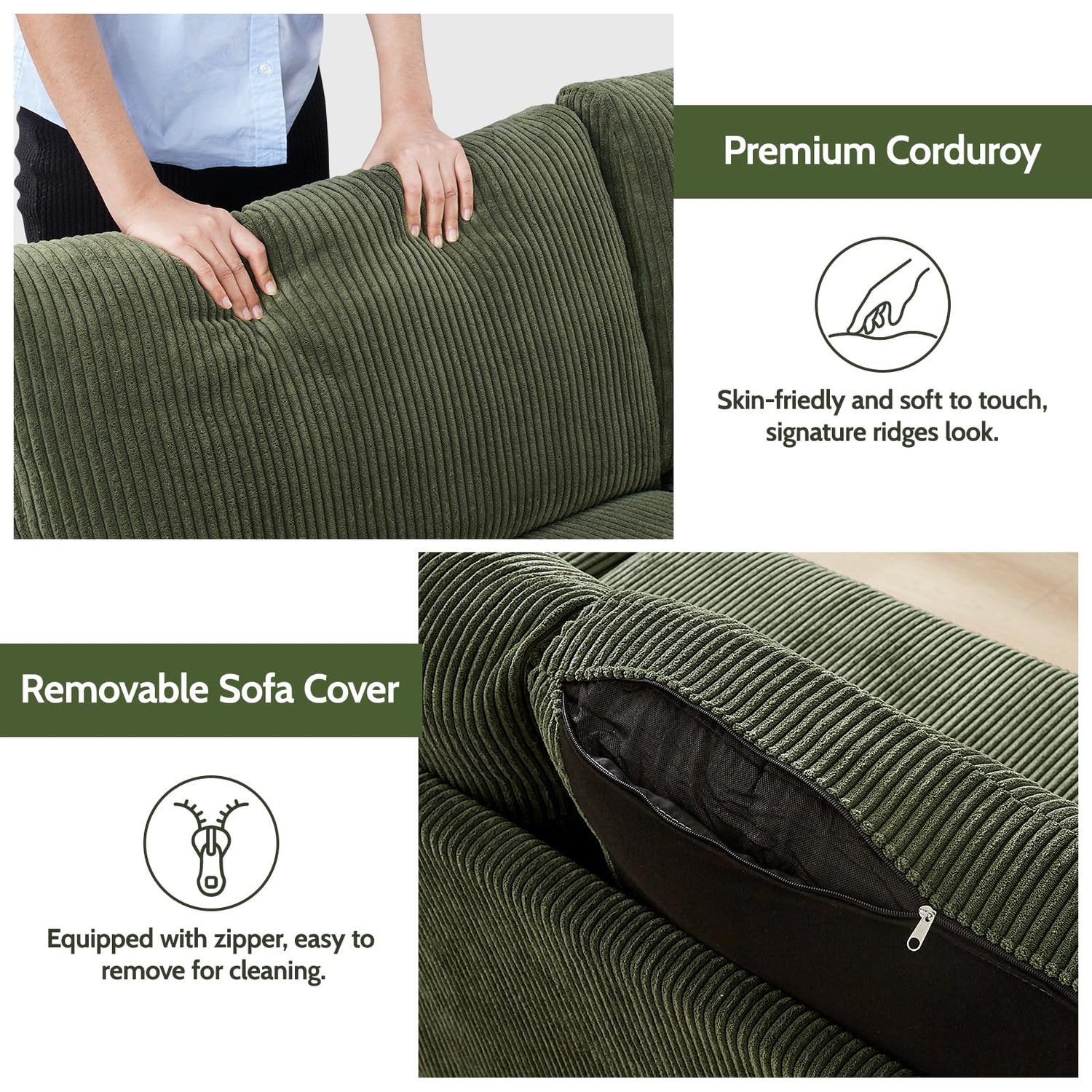 - 【Comfy Corduroy Uphosltery】Our loveseat sofa is crated with corduroy fabric, which is beloved for their distinctive ribbed texture. These ridges give corduroy its signature look and feel, adding both visual and tactile interest. Corduroy is soft to touch, more durable and resistant to stains and fading. The luxurious appereance of this loveseat can make it your bright life partner.