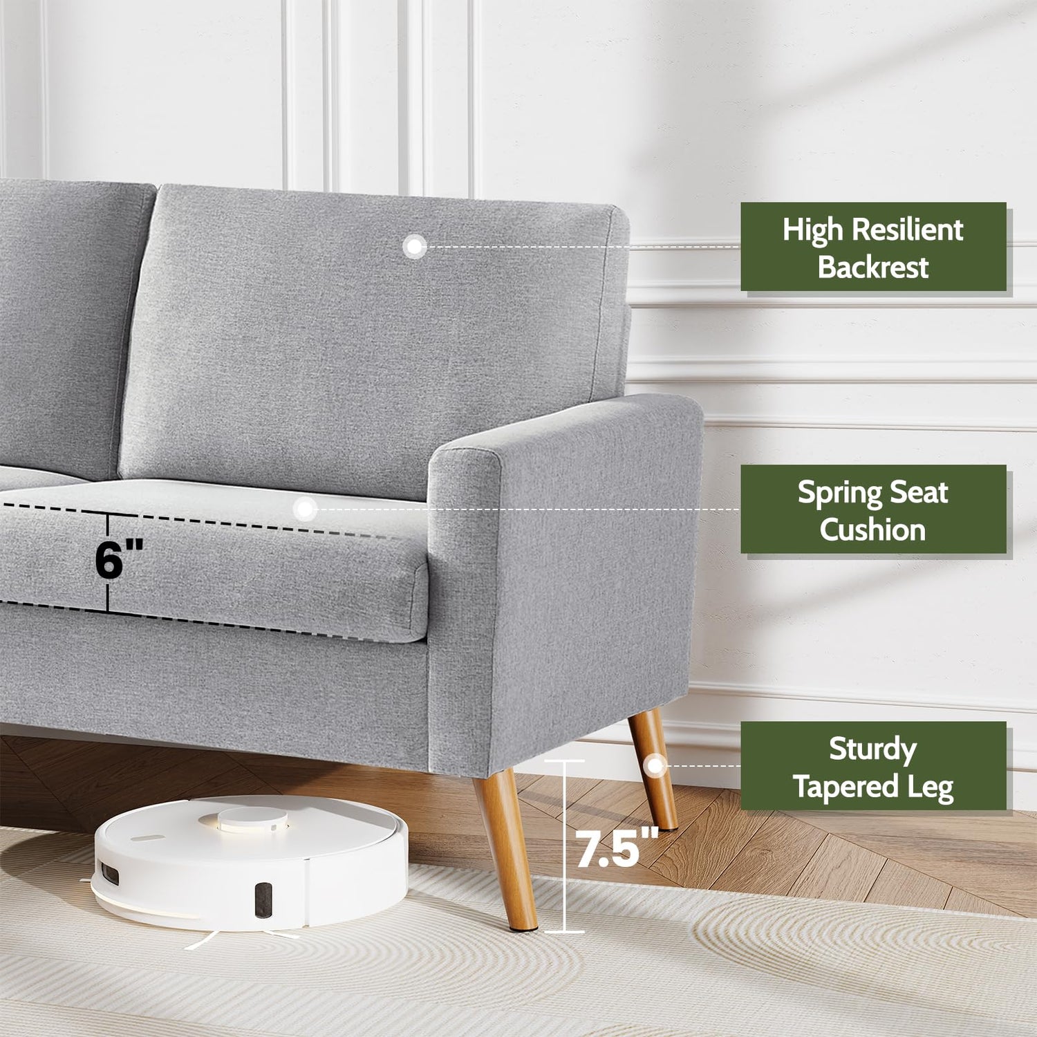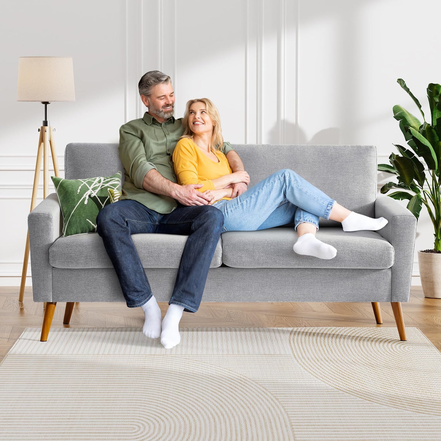 WEUP 68" Loveseat Sofa Light Grey Linen Couch, Mid Century Modern Love Seat Couches for Living Room, Small Loveseat for Bedroom Office, Comfy Sofa with Spring Cushion, Solid Wood, Tool-Free Assembly