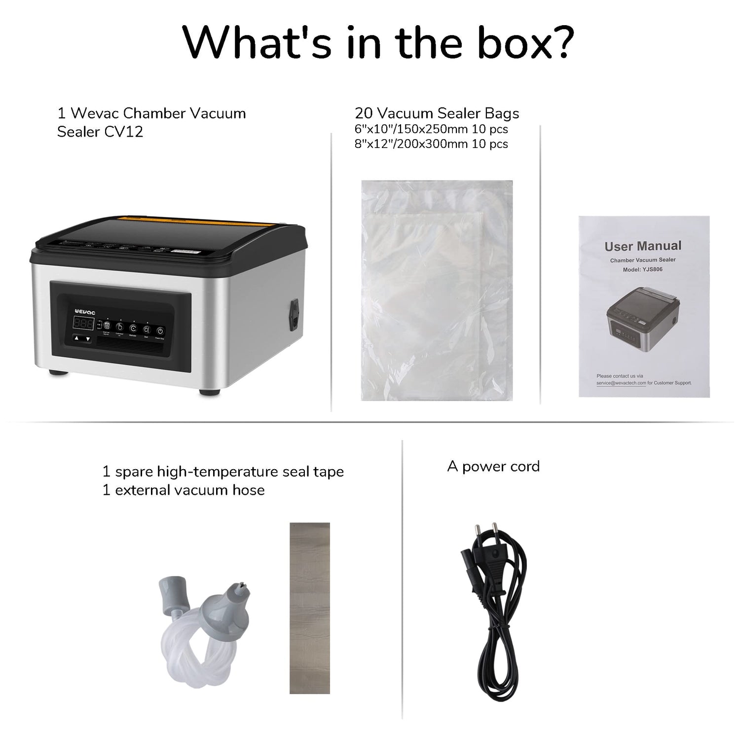 Wevac 12-Inch Chamber Vacuum Sealer CV12 - For Fresh Meats, Soups, Sauces. Heavy Duty, Commercial Width, Compact Design.