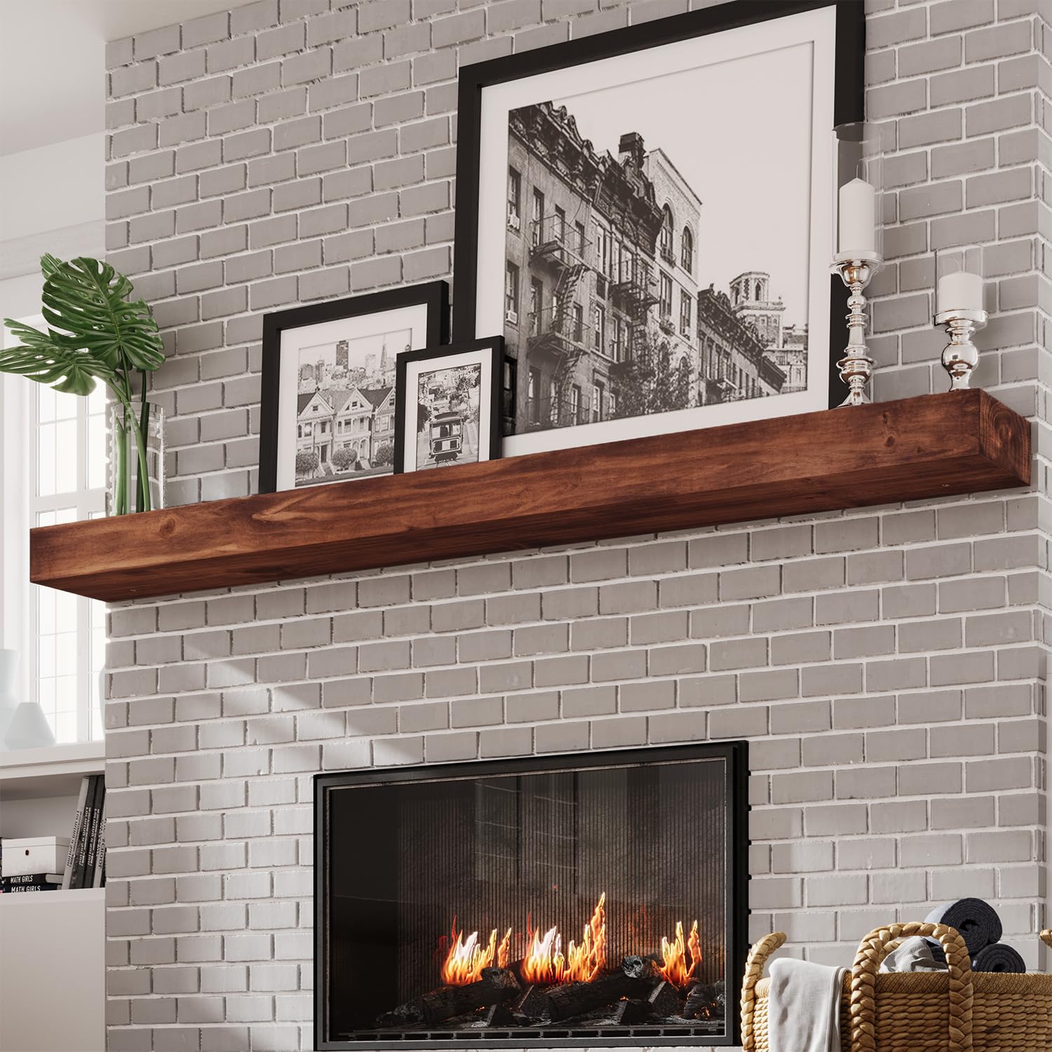 - Close to Nature: Every individual wood grain on the fireplace mantel is preserved, rendering each piece distinctly one of a kind. And, we employ a unique natural dyeing technique that not only enhances the wooden texture, creating a stunning finish, but also guarantees its useful life and protection.