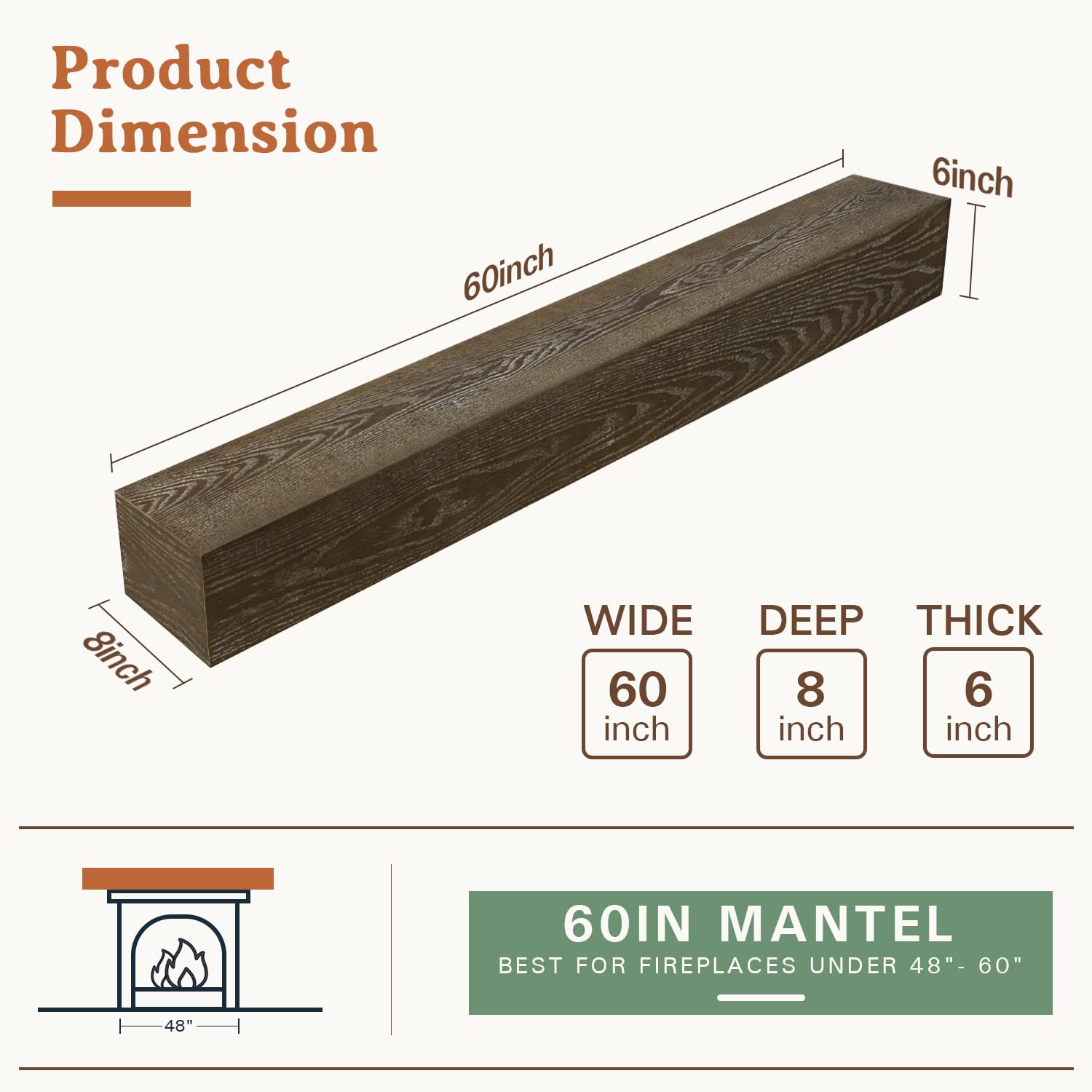 - Durable and Timeless: Unlike imitation wood, this 60 inch wood mantels for fireplace ensures long-lasting durability. This 60 inch fireplace mantel retains its beauty over the years, making it a timeless addition to any home.