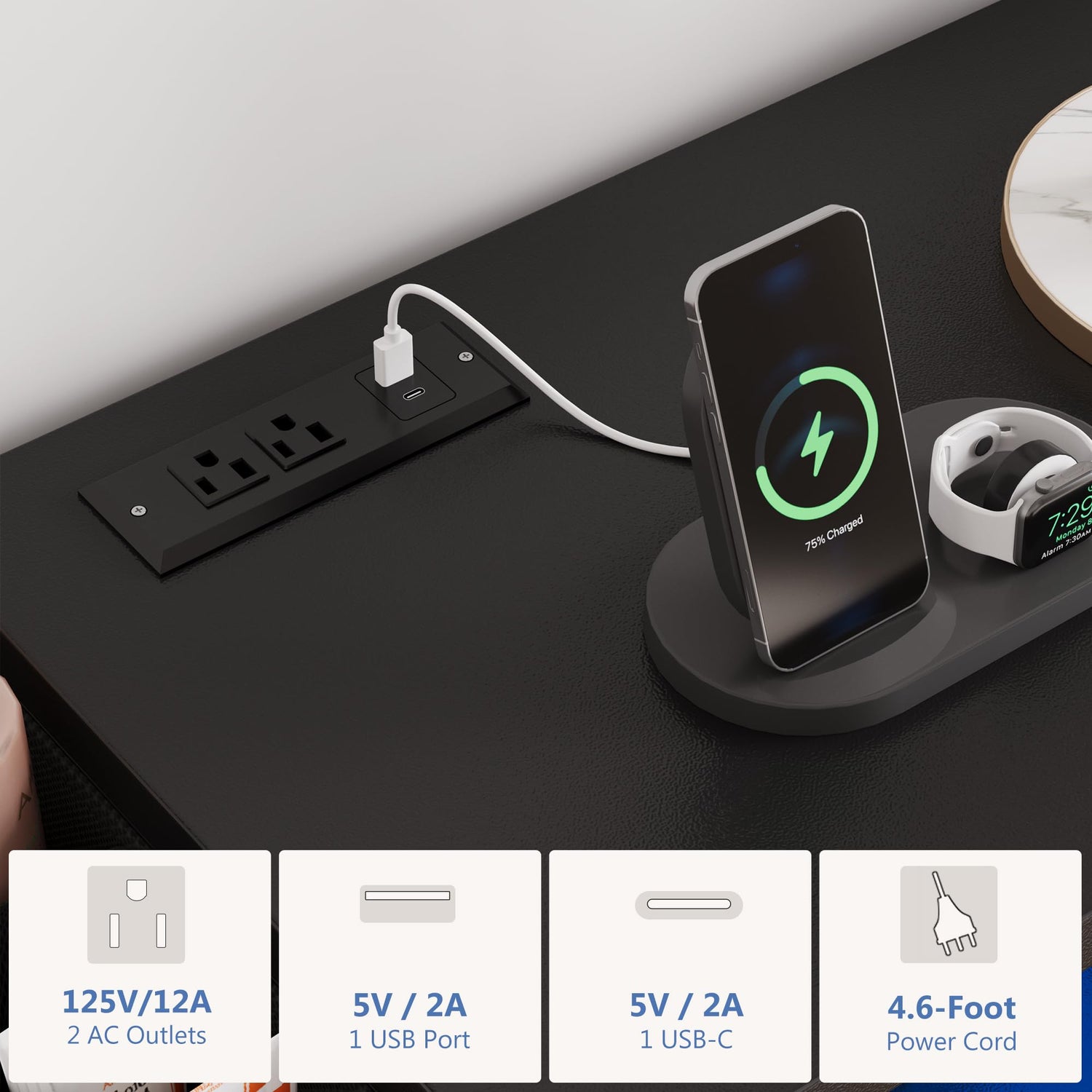 - Bedroom Dresser with LED Lights and Charging station: The modern dresser is equipped with multi-color RGB led lights, with multiple dynamic modes, music, timer and microphone modes. The LED lights colors and brightness can be directly controlled through the APP or Remote Controll.Equipped with 2 power outlet & 1 usb port & 1 type-C, this dresser tv stand offers convenient charging for your TV, gaming equipment and other electrical devices.