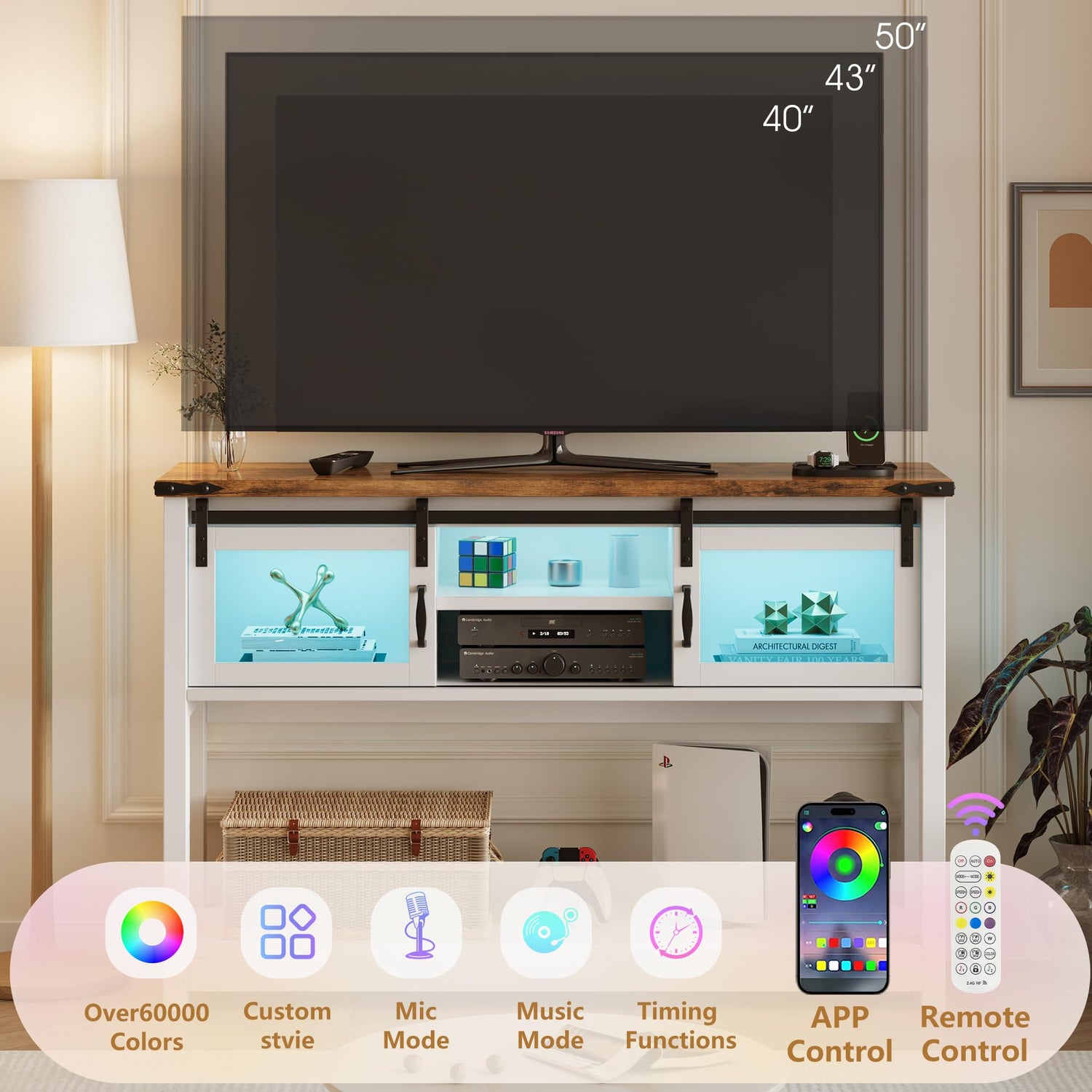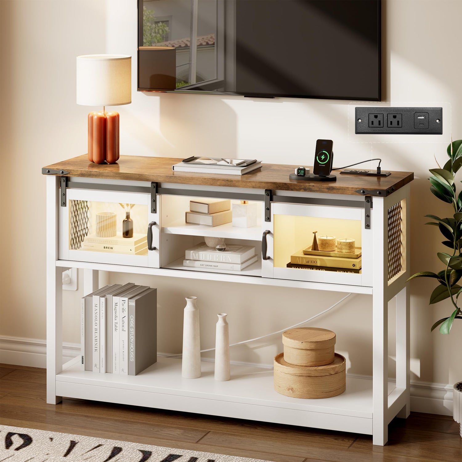 Whalefall Visual Console Table with Power Outlets, 46" Farmhouse Entryway Table with Storage, Narrow Long Sofa Table with LED Light for Living Room, Hallway, Behind Couch