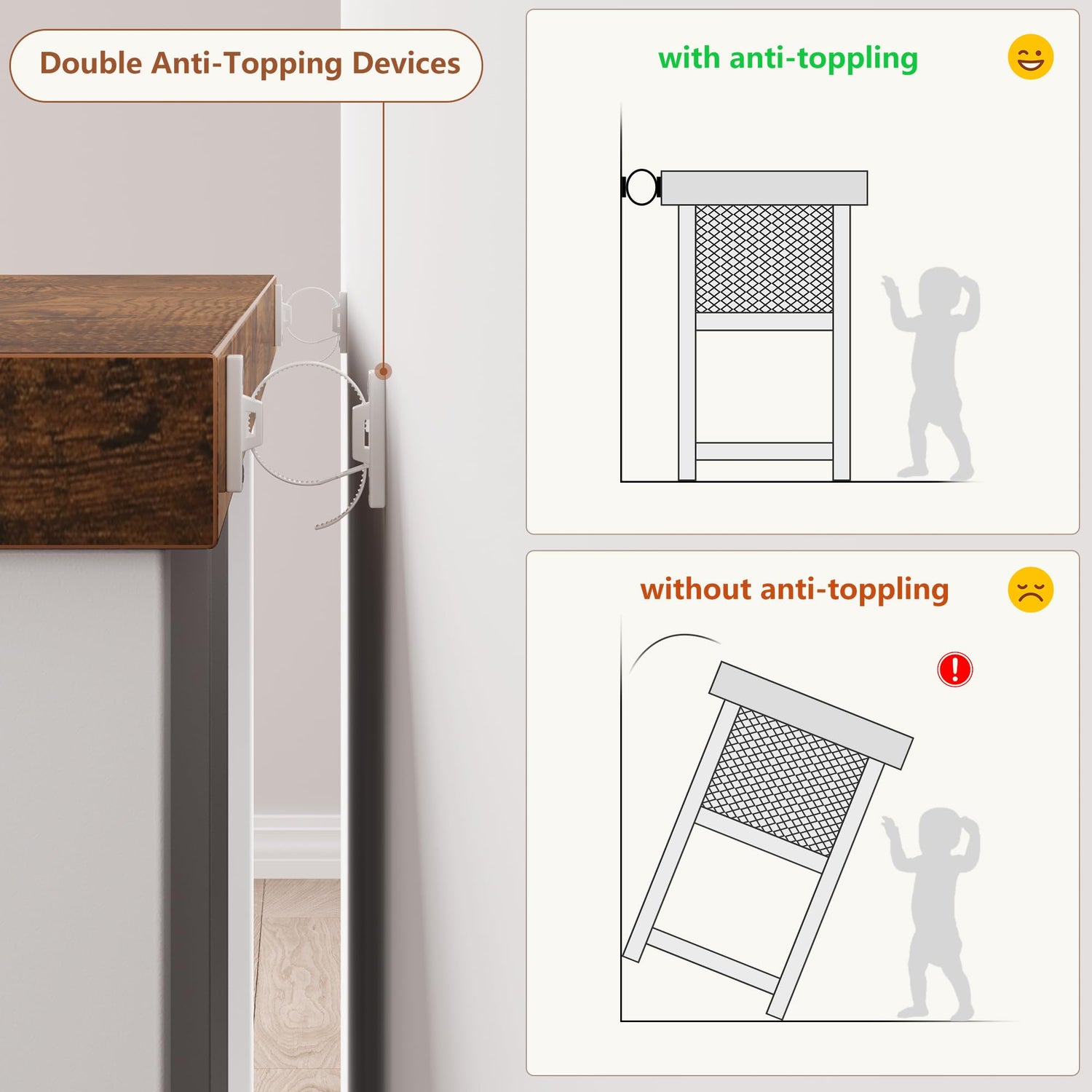 - 【High Quality & Sturdy Structure】This industrial rust console table comes with anti-fall device, which can attach the entryway table to the wall ensures extra stability for it.